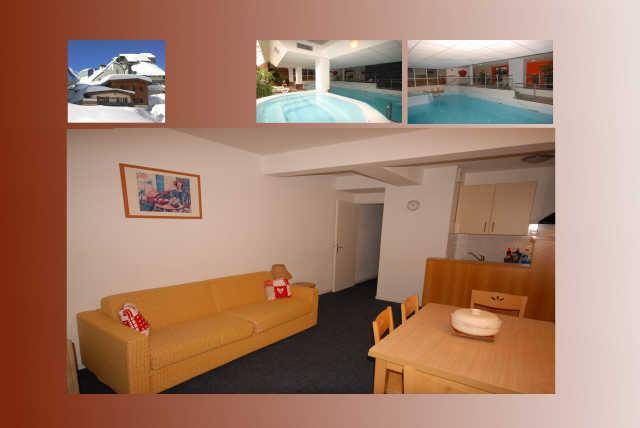 Fläche von ungefähr 42 m². 1te Etage. Orientierung : Süd. Blick skipisten. Wohnzimmer ab 21.00 m² mit Klappschlafcouch (160). Schlafzimmer ab 9.00 m² mit Doppelbett (140). Alkoven ab 6.00 m² mit 2 Stockbetten. Küche mit Kaffeemaschine, Backofen, Toaster, Geschirrspülmaschine, Mikrowellenherd, Mixer, 4 Glaskeramikkochfelder, Kühlschrank. Badezimmer ab 3.00 m² mit Badewanne, Waschbecken, Haartrockner. separates WC. Die oberen Betten sind nicht für Kinder unter 6 Jahren geeignet.