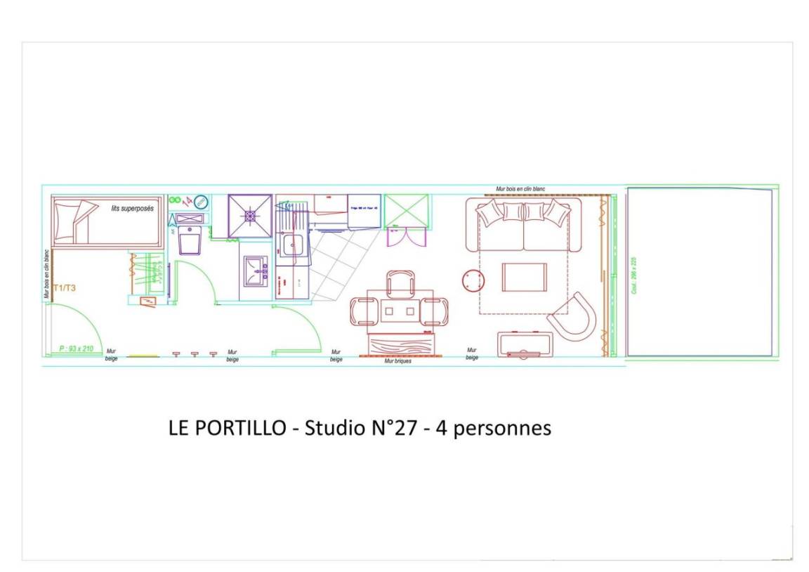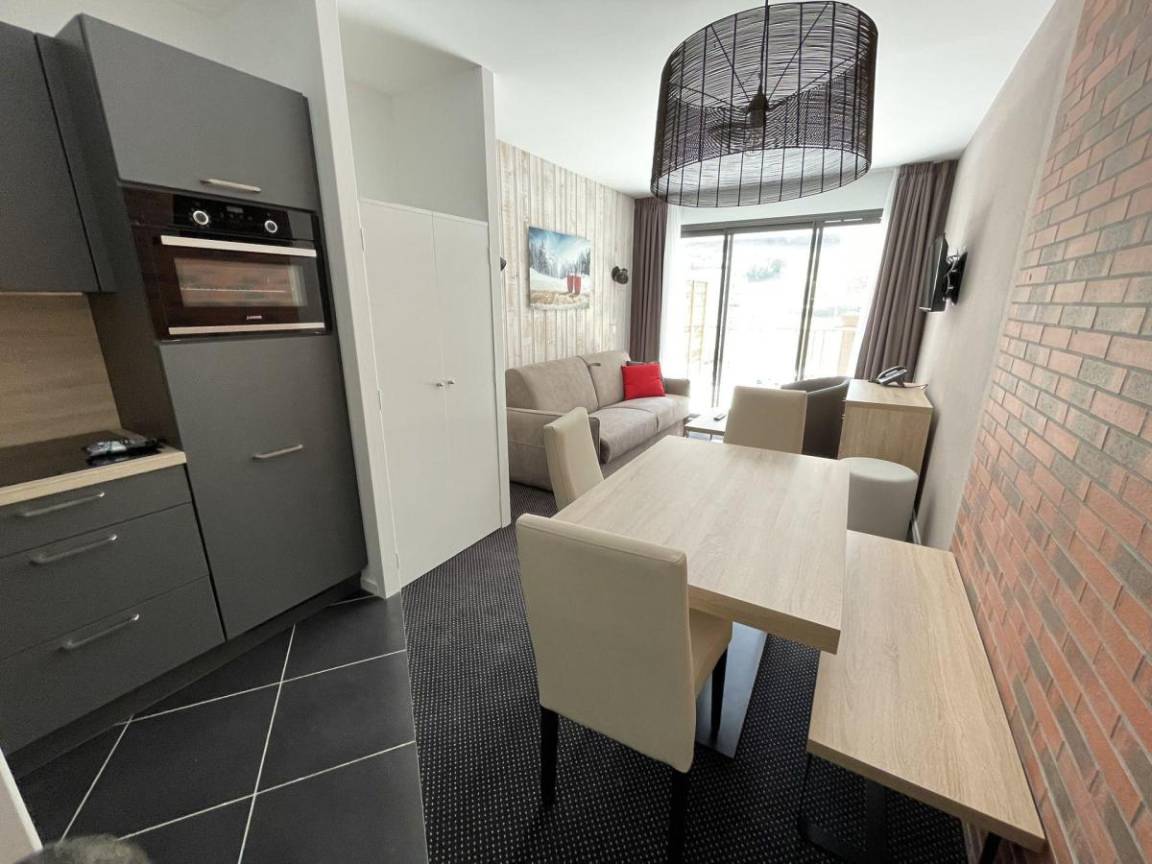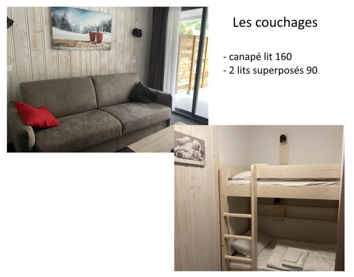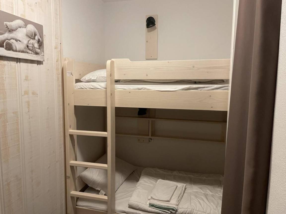 Fläche von ungefähr 29 m². 2te Etage. Orientierung : Süd. Blick skipisten und Berg. Wohnzimmer mit Klappschlafcouch (160). offener Schlafbereich mit 2 Stockbetten (90). Küche mit Wasserkocher, Kaffeemaschine, Backofen, Toaster, Geschirrspülmaschine, Mikrowellenherd, 4 Herdplatten, Kühlschrank. Waschräume mit Dusche, Haartrockner, WC. Terrasse. Die oberen Betten sind nicht für Kinder unter 6 Jahren geeignet.