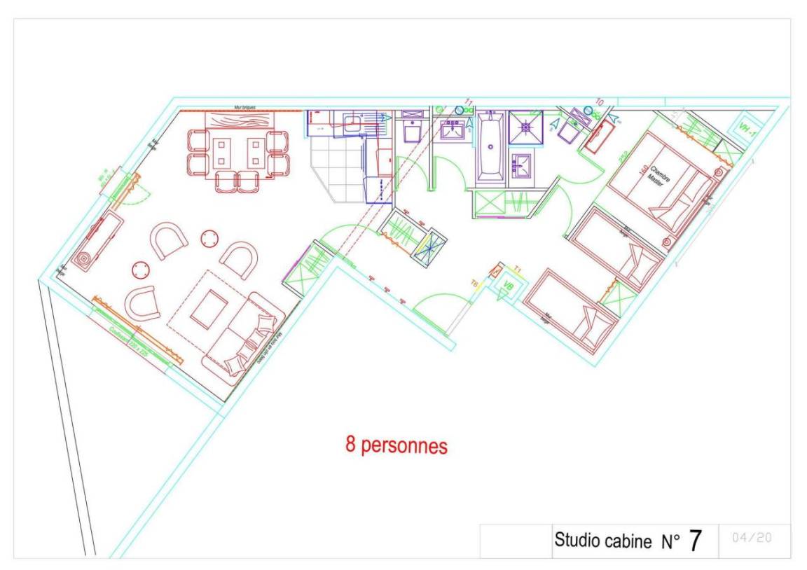 Fläche von ungefähr 65 m². 1te Etage. Orientierung : Süd. Blick berg ODER Blick station. Wohnzimmer mit Sofa. offener Schlafbereich mit 2 Stockbetten. offener Schlafbereich mit Doppelbett (140). Küche mit Kaffeemaschine, Backofen, Geschirrspülmaschine, Mikrowellenherd, 4 Herdplatten, Kühlschrank. Badezimmer mit Badewanne. WC. Waschräume mit Badewanne, Dusche. Terrasse. Die oberen Betten sind nicht für Kinder unter 6 Jahren geeignet.