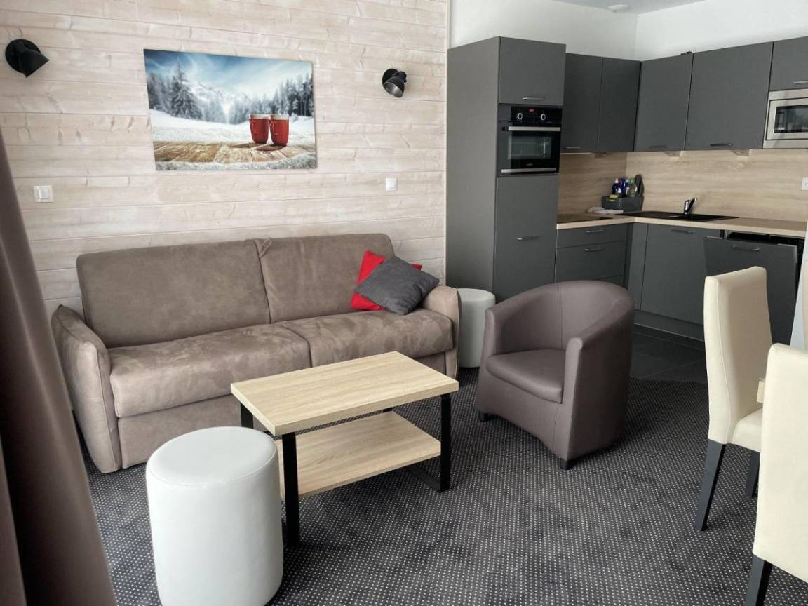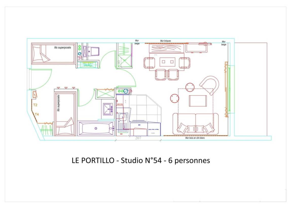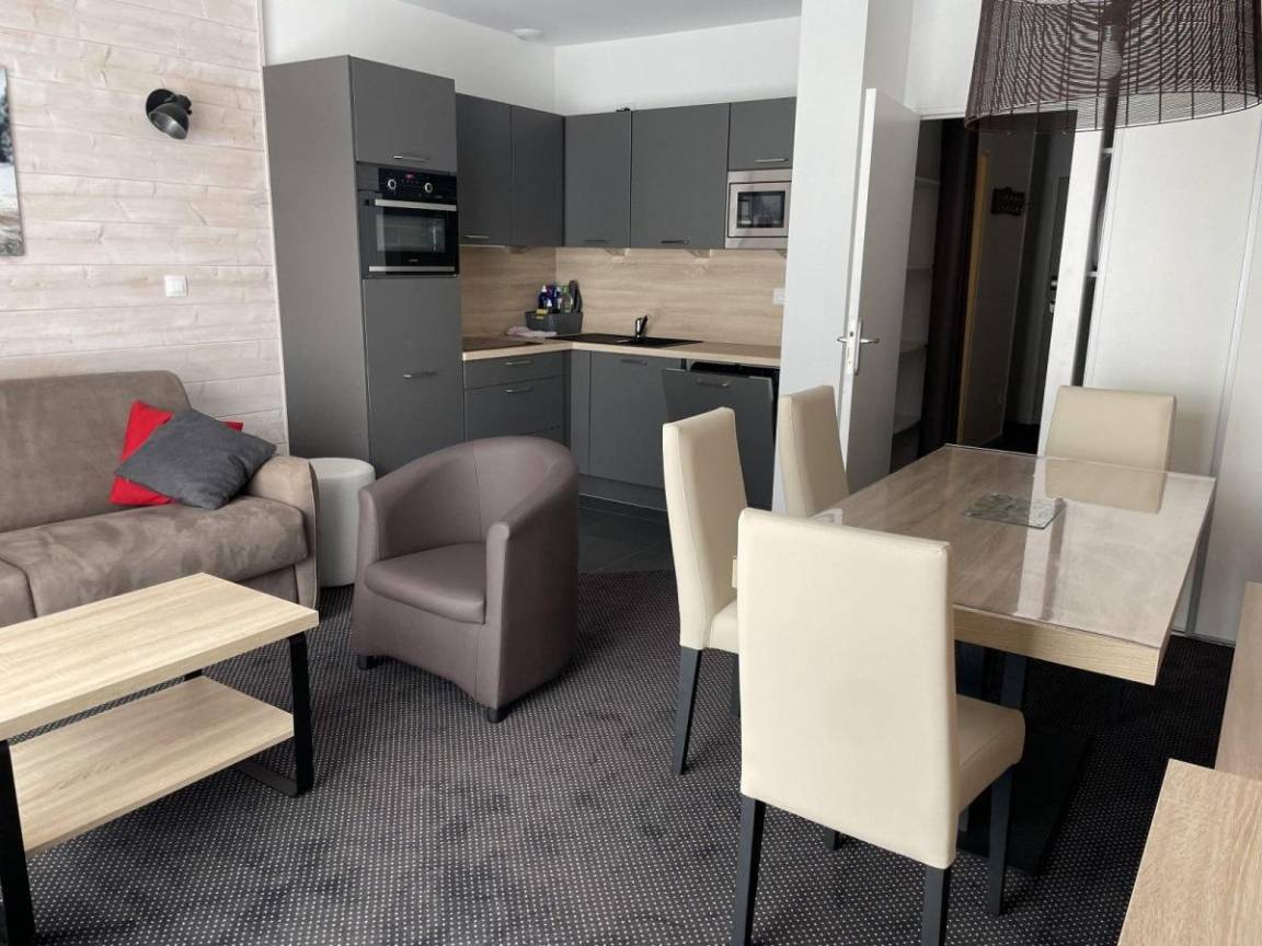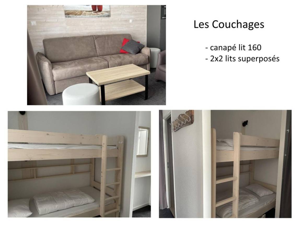 Fläche von ungefähr 38 m². 5te Etage. Orientierung : Süd. Blick berg und Tal. Wohnzimmer mit Klappschlafcouch (160). 2 offene Schlafbereiche mit 2 Stockbetten (90). Küche mit Wasserkocher, Kaffeemaschine, Backofen, Toaster, Geschirrspülmaschine, Mikrowellenherd, 4 Herdplatten, Kühlschrank. WC. Badezimmer mit Badewanne, Haartrockner. Terrasse. Die oberen Betten sind nicht für Kinder unter 6 Jahren geeignet.