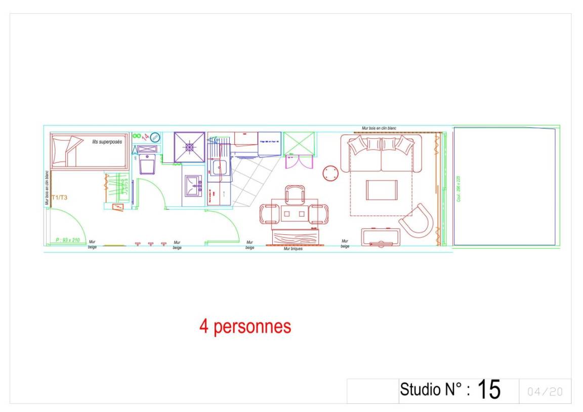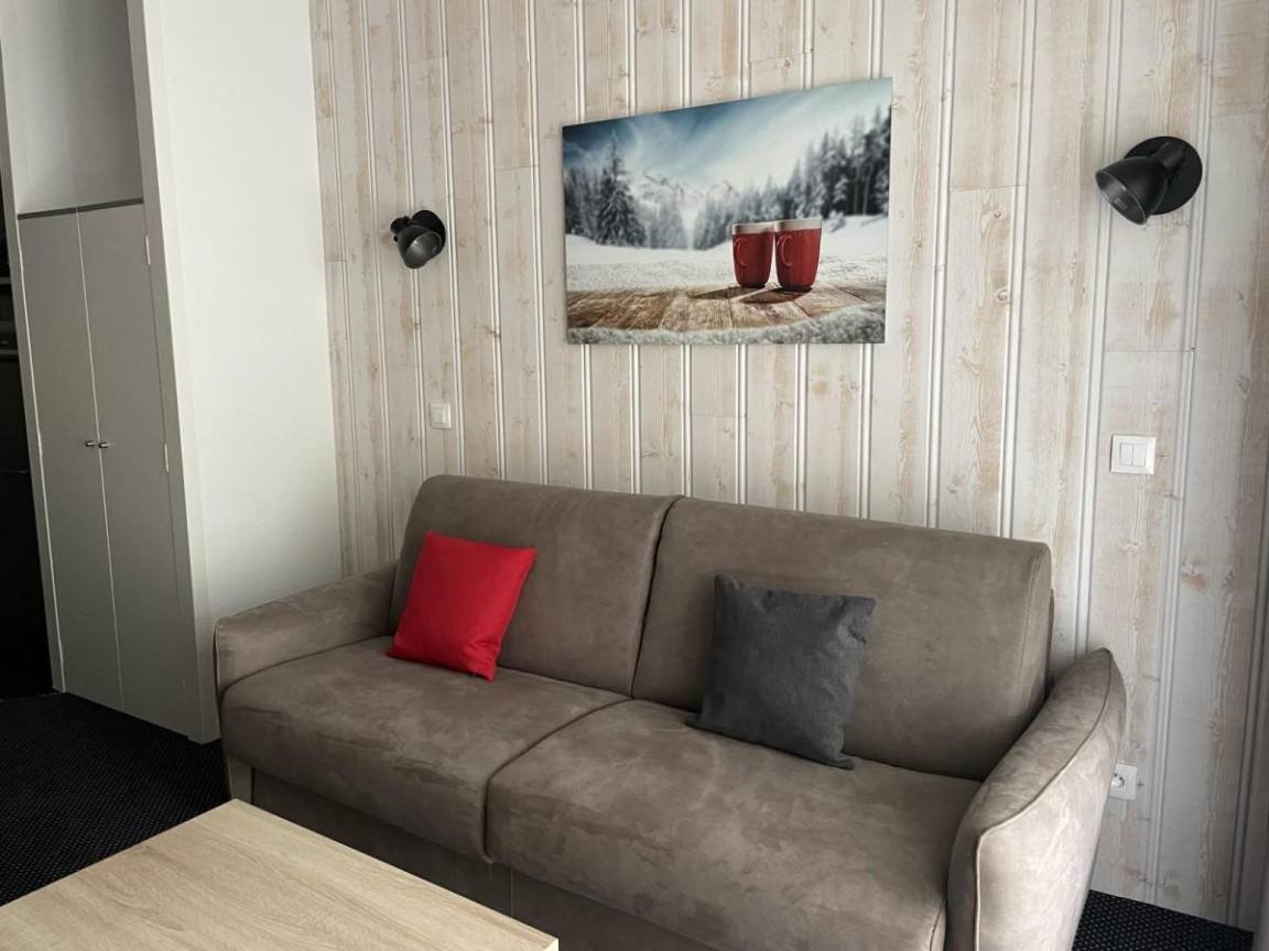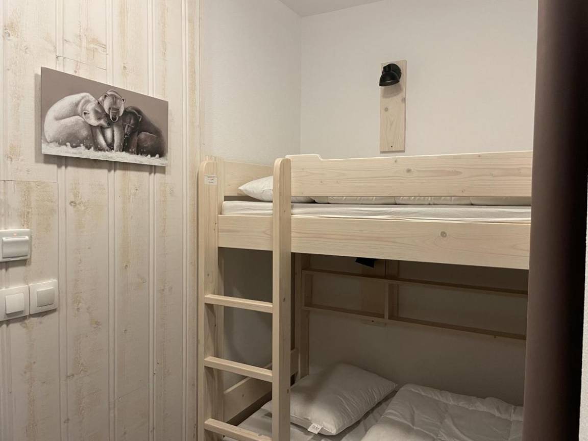 Fläche von ungefähr 29 m². 1te Etage. Orientierung : Süd, Süd-West. Blick skipisten. Wohnzimmer mit Klappschlafcouch (160). offener Schlafbereich mit 2 Stockbetten. Kochnische mit Wasserkocher, Kaffeemaschine, kleiner Backofen mit Mikrowellenfunktion, Toaster, Geschirrspülmaschine, Glaskeramikkochfelder, Kühlschrank. Waschräume mit Dusche, Haartrockner, WC. Terrasse. Die oberen Betten sind nicht für Kinder unter 6 Jahren geeignet.