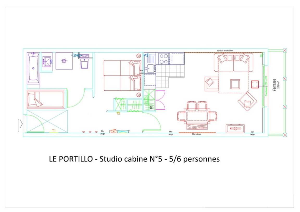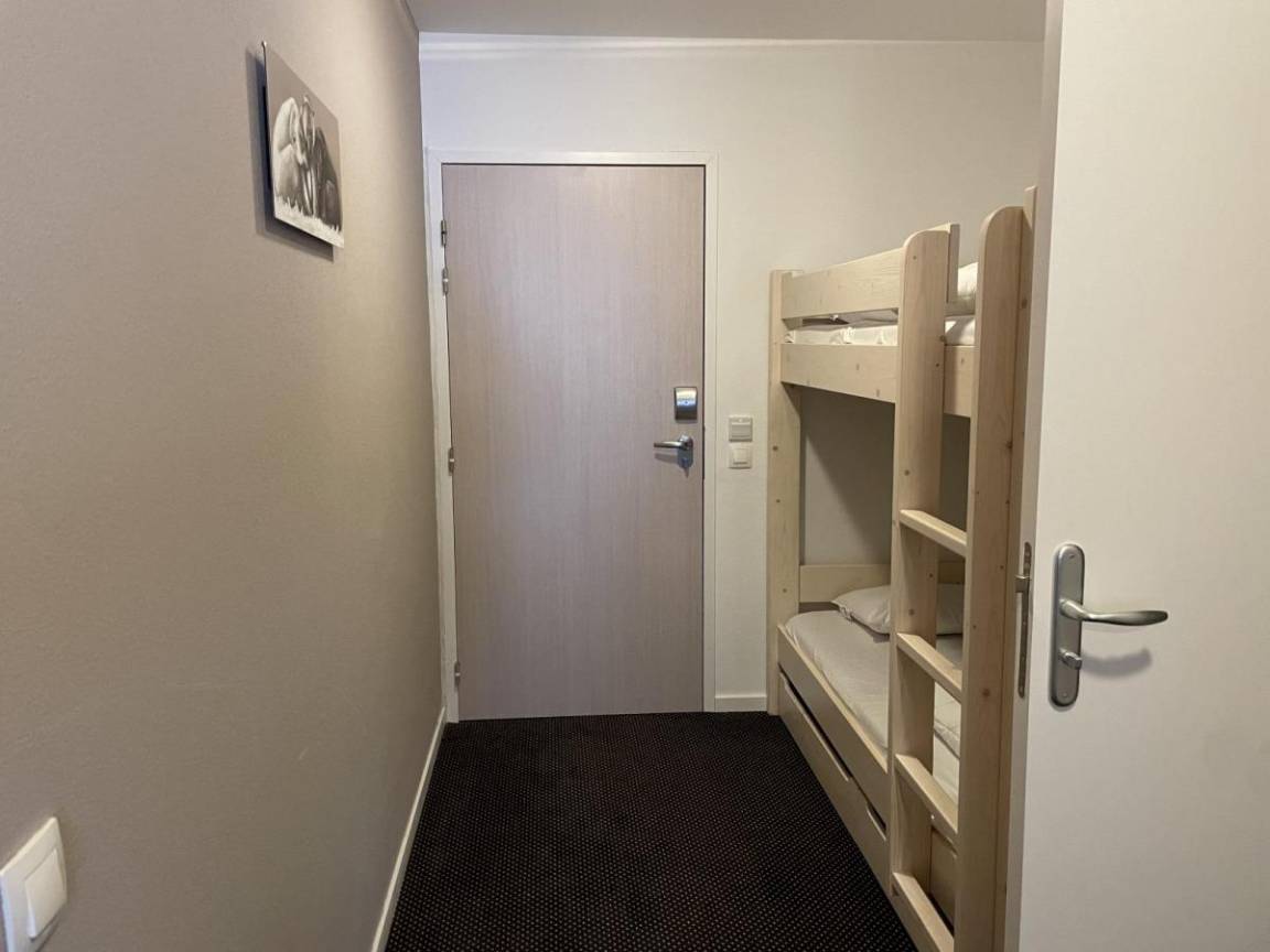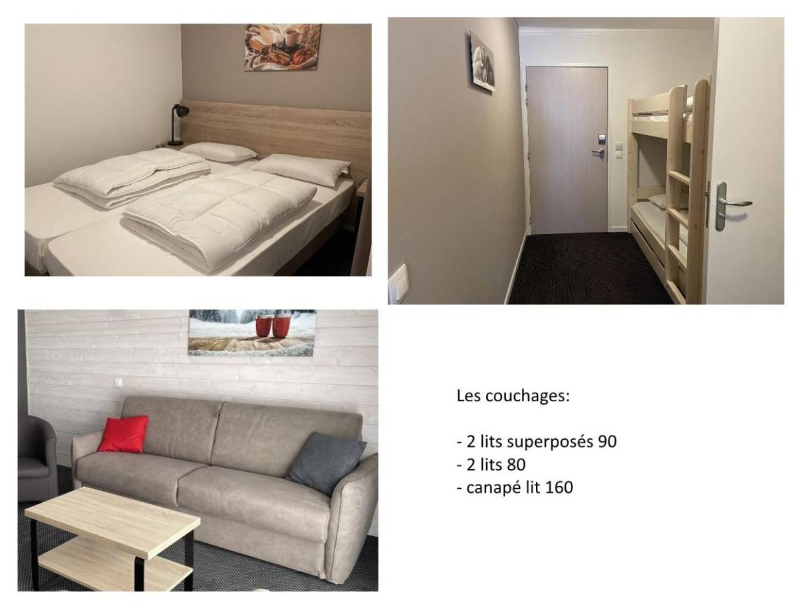 Fläche von ungefähr 52 m². Erdgeschoss. Orientierung : Süd, Süd-West. Blick skipisten und Station. Wohnzimmer mit Klappschlafcouch (160). offener Schlafbereich mit 2 Stockbetten (90). offener Schlafbereich mit 2 Einzelbetten (80). Küche mit Wasserkocher, Kaffeemaschine, Backofen, Toaster, Geschirrspülmaschine, Mikrowellenherd, 4 Herdplatten, Kühlschrank. Badezimmer mit Badewanne, Haartrockner, WC. Balkon. Die oberen Betten sind nicht für Kinder unter 6 Jahren geeignet.