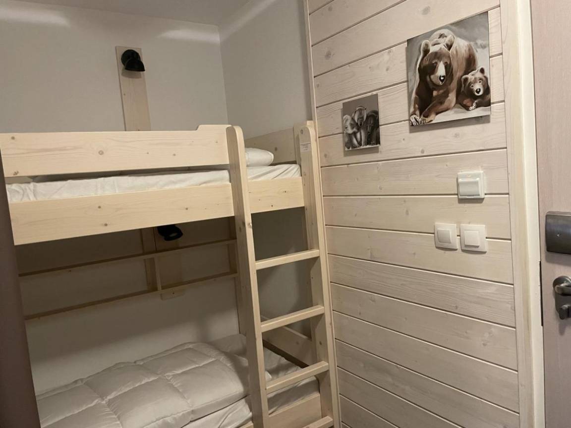 Fläche von ungefähr 29 m². 3te Etage. Orientierung : Süd. Blick skipisten und Berg. Wohnzimmer mit Klappschlafcouch (160). offener Schlafbereich mit 2 Stockbetten (90). Küche mit Wasserkocher, Kaffeemaschine (filtres), Backofen, Toaster, Geschirrspülmaschine, Mikrowellenherd, 4 Herdplatten, Kühlschrank. Badezimmer mit Dusche, Haartrockner, WC. Terrasse. Die oberen Betten sind nicht für Kinder unter 6 Jahren geeignet.