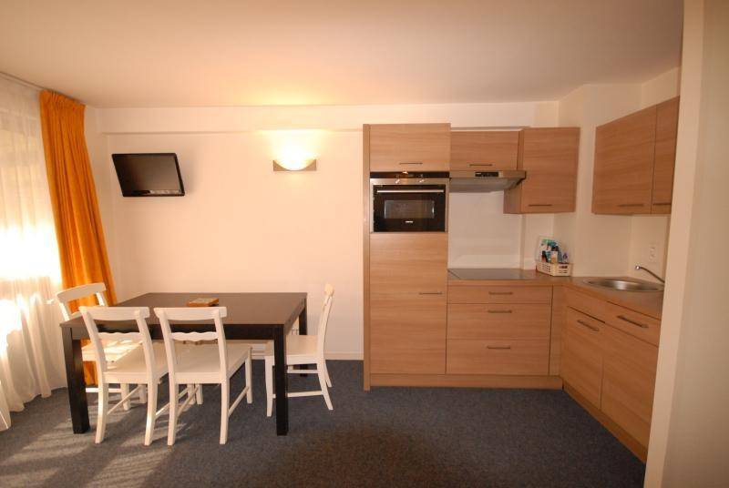 Fläche von ungefähr 40 m². 1te Etage. Orientierung : Süd. Blick skipisten. Wohnzimmer ab 16.00 m² mit Klappschlafcouch (160). 2 Alkoven ab 4.00 m² mit 2 Stockbetten. offener Schlafbereich ab 7.00 m² mit Doppelbett (140). Küche mit Wasserkocher, Kaffeemaschine, kleiner Backofen mit Mikrowellenfunktion, Toaster, Geschirrspülmaschine, 4 Glaskeramikkochfelder, Kühlschrank. Badezimmer ab 3.00 m² mit Badewanne, Waschbecken, Haartrockner. separates WC. Die oberen Betten sind nicht für Kinder unter 6 Jahren geeignet.