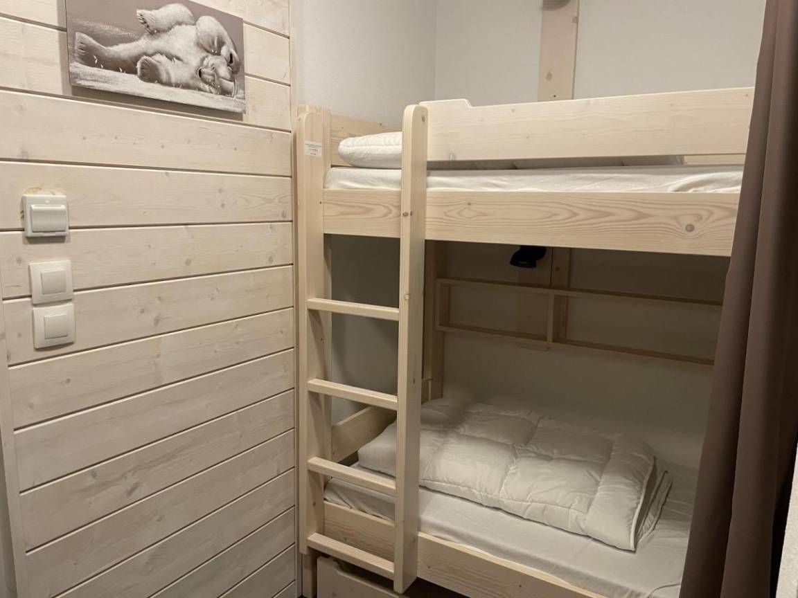 Fläche von ungefähr 29 m². 3te Etage. Orientierung : Süd. Blick berg und Skipisten. Wohnzimmer mit Klappschlafcouch (160). offener Schlafbereich mit 2 Stockbetten (90). Küche mit Wasserkocher, Kaffeemaschine (filtres), Backofen, Toaster, Geschirrspülmaschine, Mikrowellenherd, 4 Herdplatten, Kühlschrank. Waschräume mit Dusche, WC. Balkon. Die oberen Betten sind nicht für Kinder unter 6 Jahren geeignet.