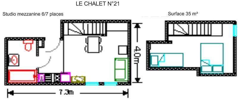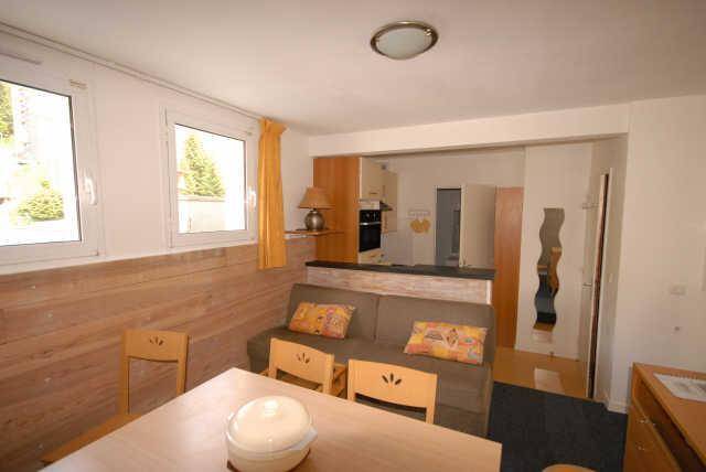 Fläche von ungefähr 35 m². 3te Etage. Orientierung : Ost. Blick station. Wohnzimmer ab 16.60 m² mit Klappschlafcouch (160). Schlafzimmer ab 8.00 m² mit 2 Stockbetten davon eines mit 1,40m. offener Schlafbereich ab 3.80 m² mit Doppelbett, einfaches Mezzanine Bett. Küche ab 3.00 m² mit Kaffeemaschine, Backofen, Toaster, Geschirrspülmaschine, Mikrowellenherd, Mixer, 2 Glaskeramikkochfelder, Kühlschrank. Badezimmer ab 3.70 m² mit Badewanne, Waschbecken, Haartrockner, WC. Die oberen Betten sind nicht für Kinder unter 6 Jahren geeignet.