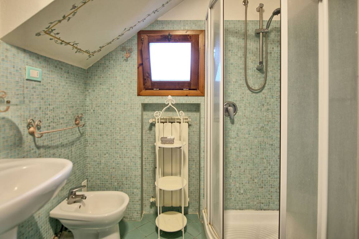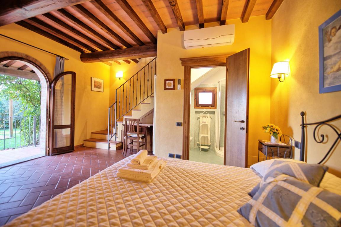 Erdgeschoss: Durchgangszimmer mit Doppelschlafcouch, Bad mit Dusche und Doppelzimmer, kleine ausgestattete Veranda.
