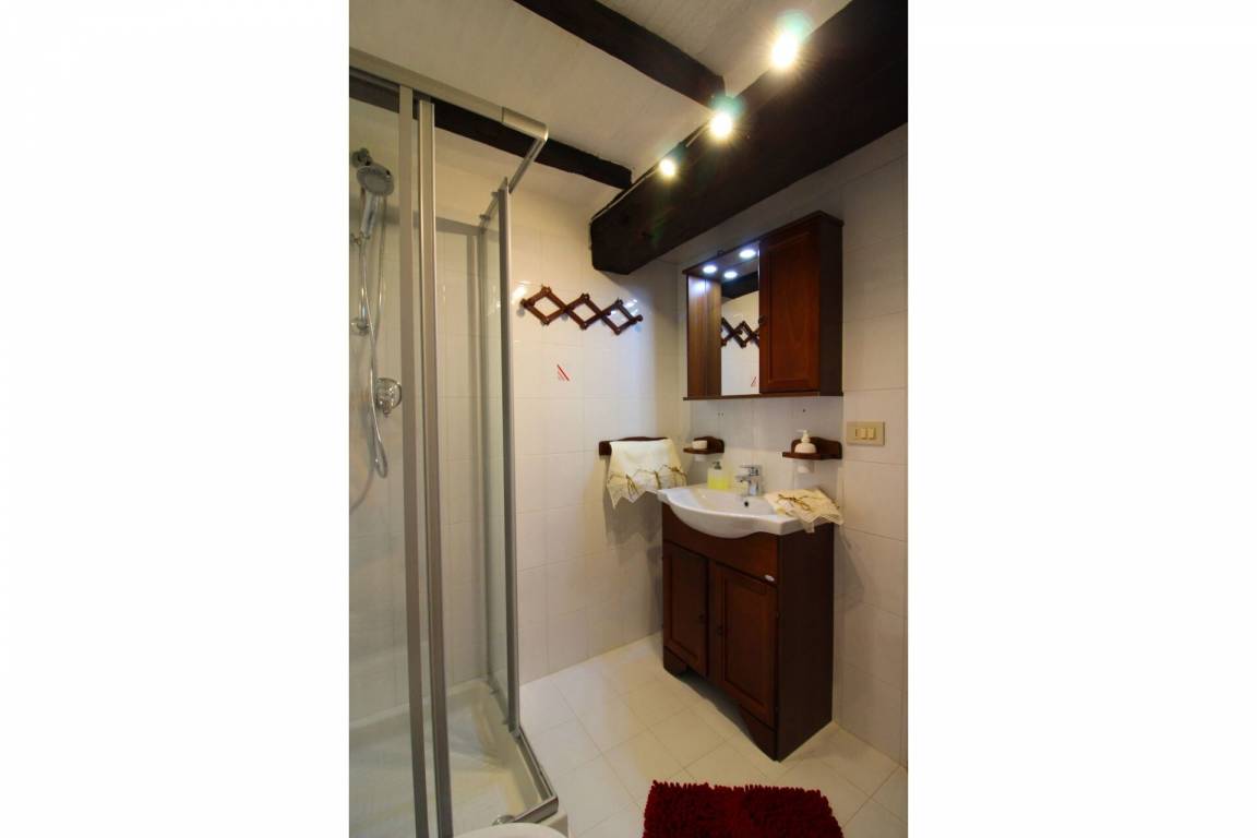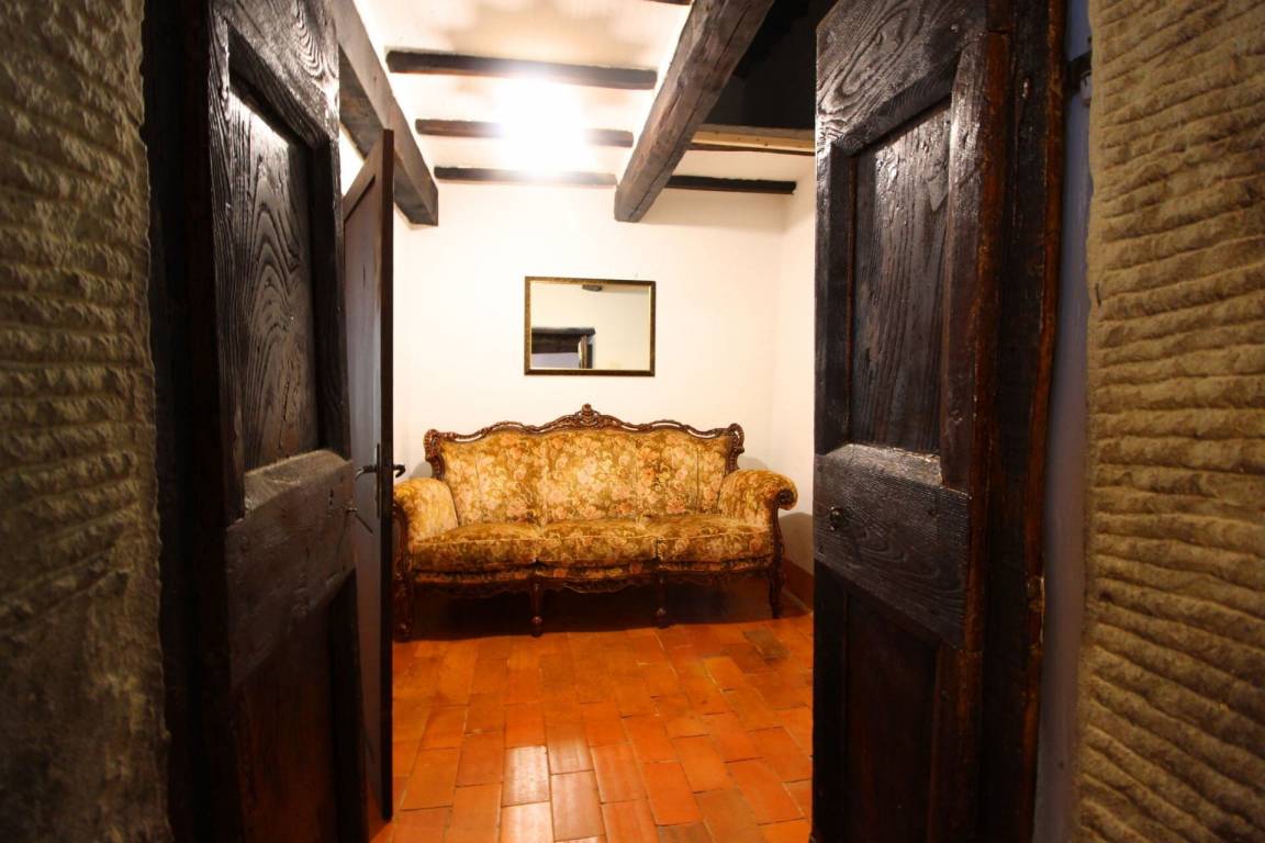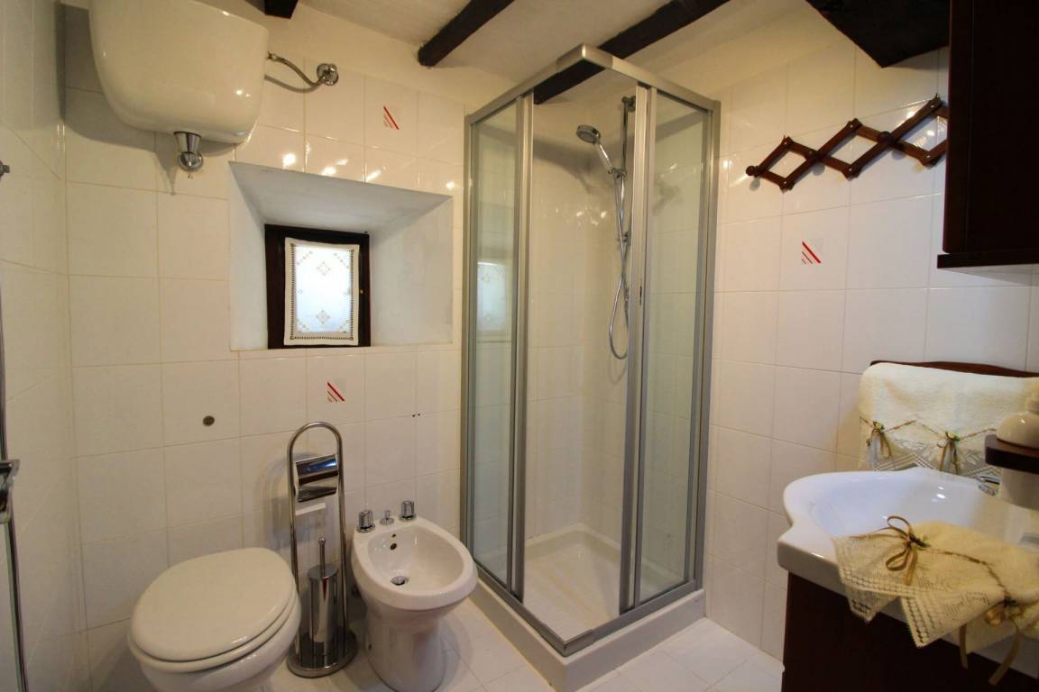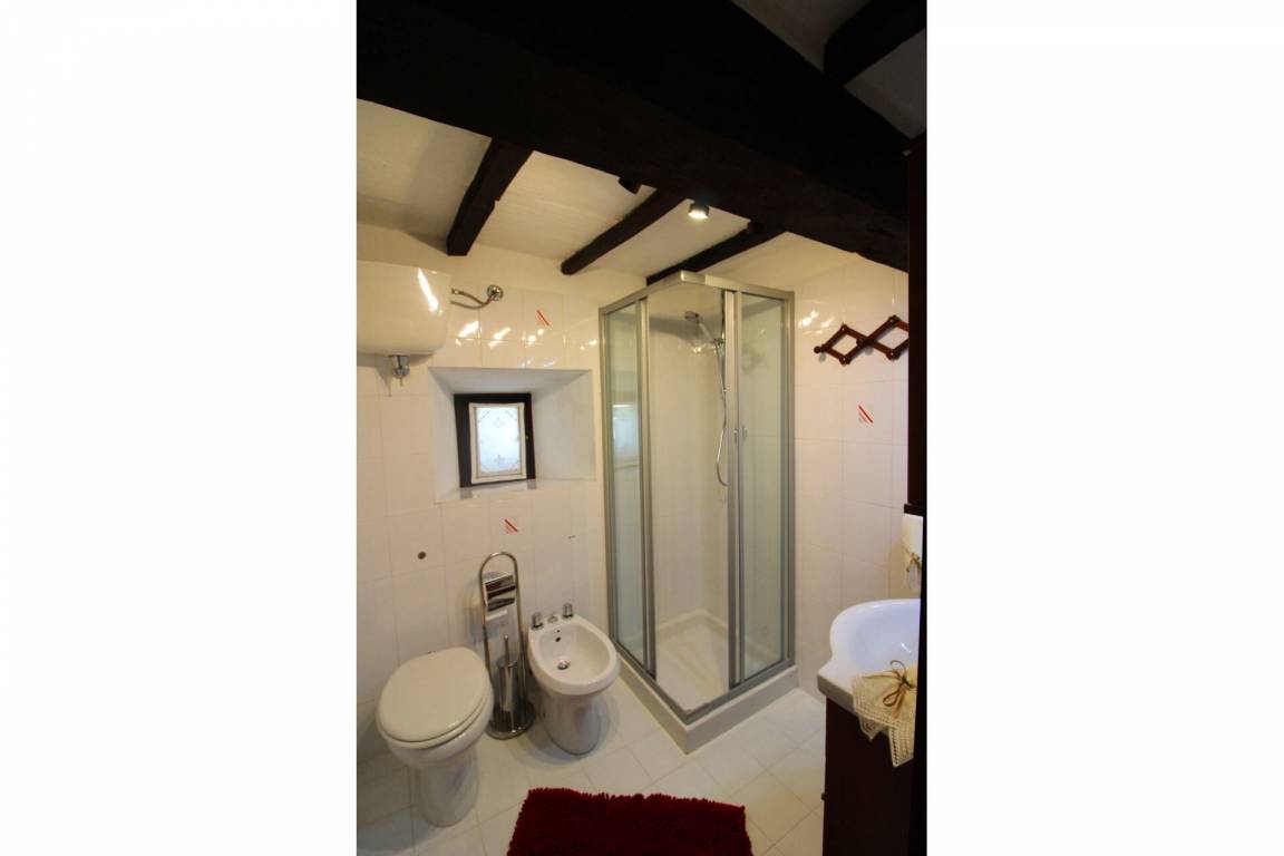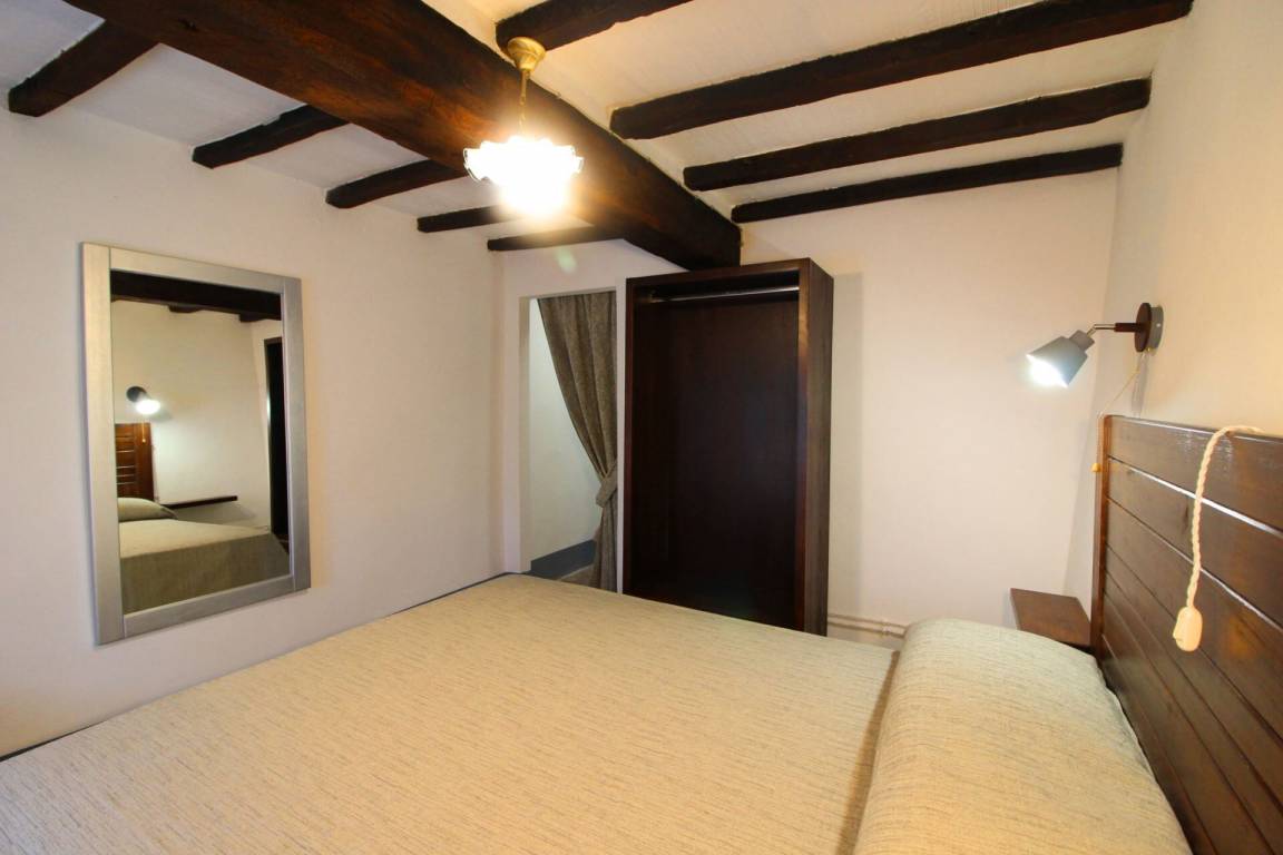 ERSTER STOCK: über eine Außentreppe mit Panoramaterrasse erreichbar, Eingang zum großen Wohn-Esszimmer mit Küchenecke und altem Kamin. Ein paar Stufen führen zu zwei Doppelschlafzimmern und einem Bad mit Dusche. Es besteht die Möglichkeit, in einem der Schlafzimmer im ersten Stock ein Einzelbett aufzustellen.