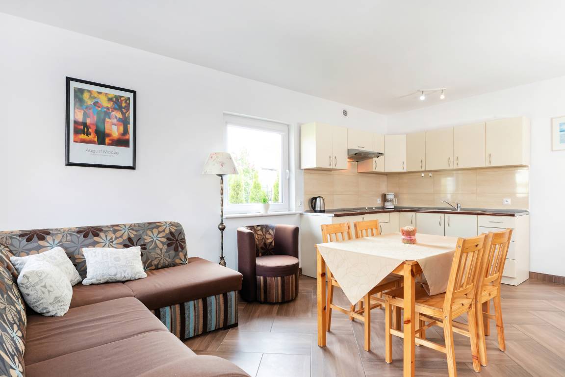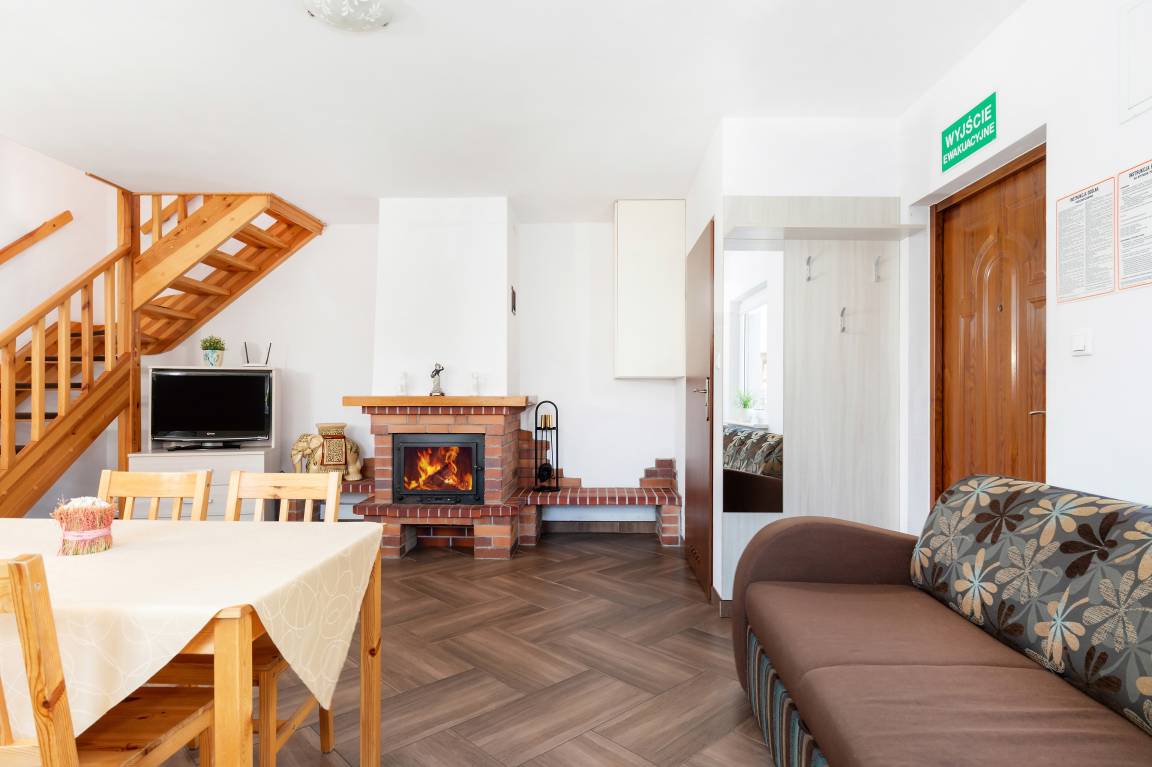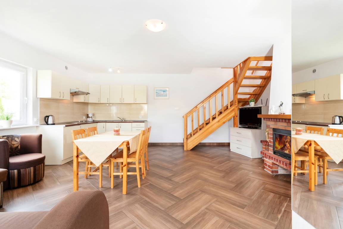 Nebenkosten Strom nach Verbrauch. Kurtaxe. Bettwäsche leihbar 20 Zl./Pers (Bestellung). Handtücher mitzubringen. Zusätzliche Leistungen Kostenloser Internetzugang über W-Lan. Kaminholz 70 Zl./Kiste. 1 Pkw-Stellplatz im Preis inklusive. Kaution 50 €. Kinder Babybett zusätzlich zur maximalen Personenzahl 10 Zl./Tag (Bestellung). Hochstuhl ohne Berechnung (Bestellung). Haustier 20 Zl./Tag, max. 2 Hunde (Anmeldung).Räume & Aufteilung