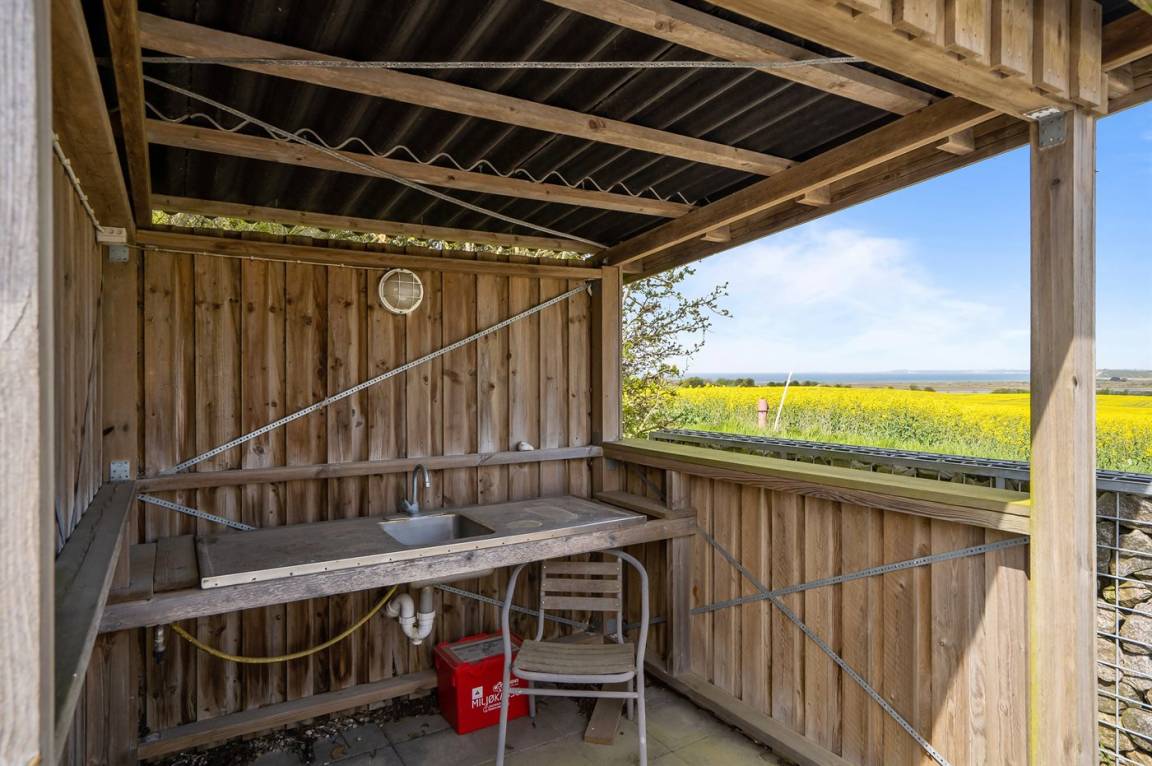 DraußenDie Ferienunterkunft liegt auf einem 750 m² großen Gartengrundstück. Die Entfernung zum Meer beträgt 700 m. Die nächste Einkaufsmöglichkeit liegt 12000 m entfernt. Es steht ein 28 m² Terrassenareal zur Verfügung.Lagerfeuerstelle. Es steht ein Carport zur Verfügung. Parkplatz auf dem Grundstück.