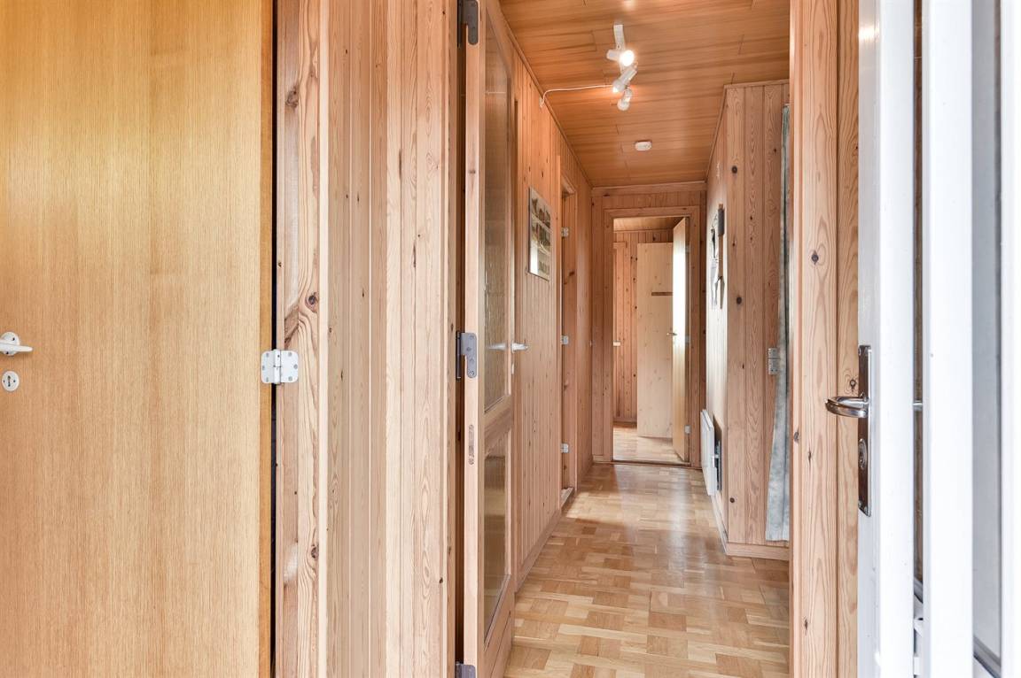 Innen gibt es Holzdecken und Parkettböden mit Brücken. Gut ausgestattete Küche mit u. a. Mikrowelle, Geschirrspüler und Tiefkühlgerät. Gemütliches Wohnzimmer mit Kaminofen, Stereoanlage mit CD-Spieler und TV mit deutschen Programmen. Darüber hinaus kostenlose, kabellose Internetverbindung (Computer ist mitzubringen), Waschmaschine und Wäschetrockner vorhanden. Herrliches Badezimmer (2003) mit Fußbodenheizung. Die Schlafplätze des Hauses verteilen sich auf 2 gute Schlafzimmer; 1 mit Doppelbett und 1 mit 2 Einzelbetten.