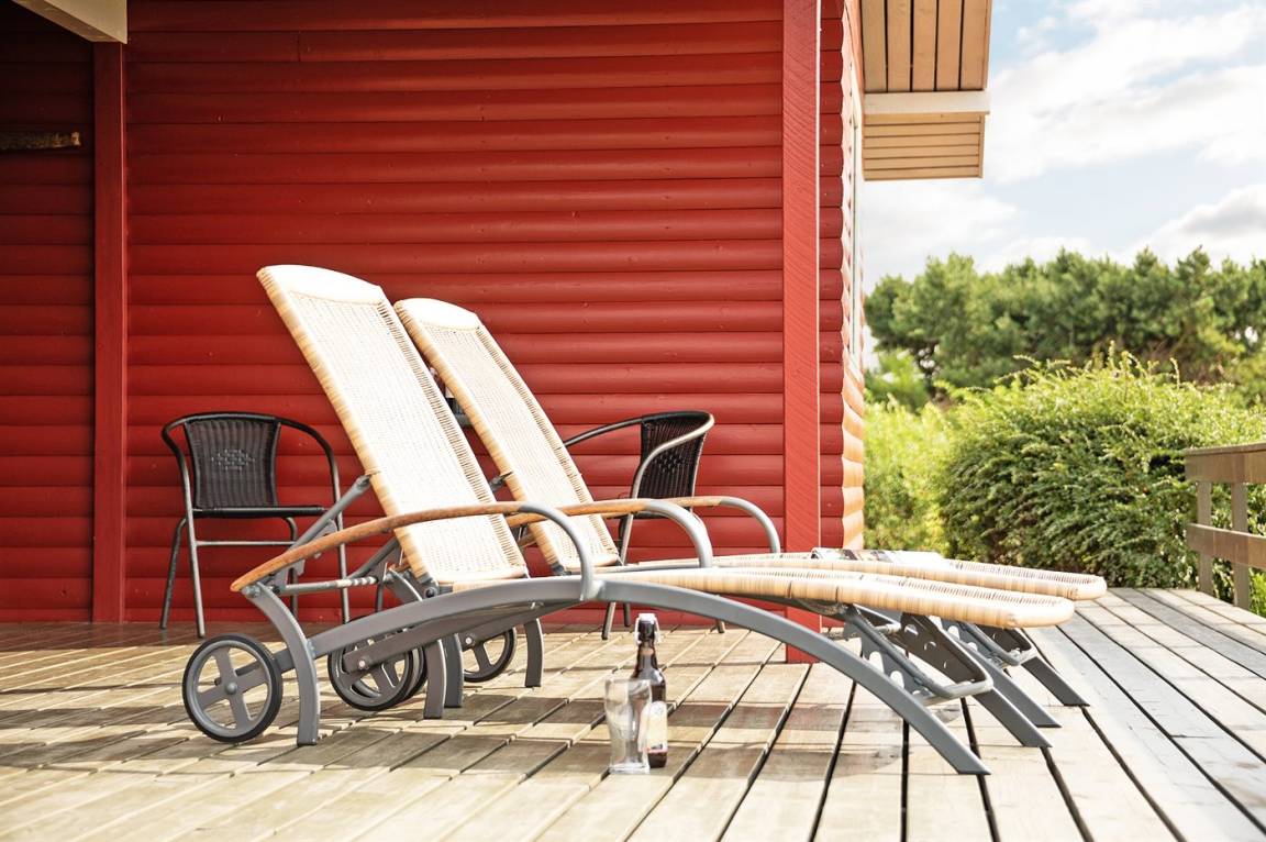 Besonders gepflegtes Ferienhaus aus Holz, 1972 gebaut und 1999 renoviert. Das Haus ist auf einem kinderfreundlichen Gartengrundstück gelegen. Zum Haus gehören neue, offene und überdachte Terrassen (2005) mit Gartenmöbeln.