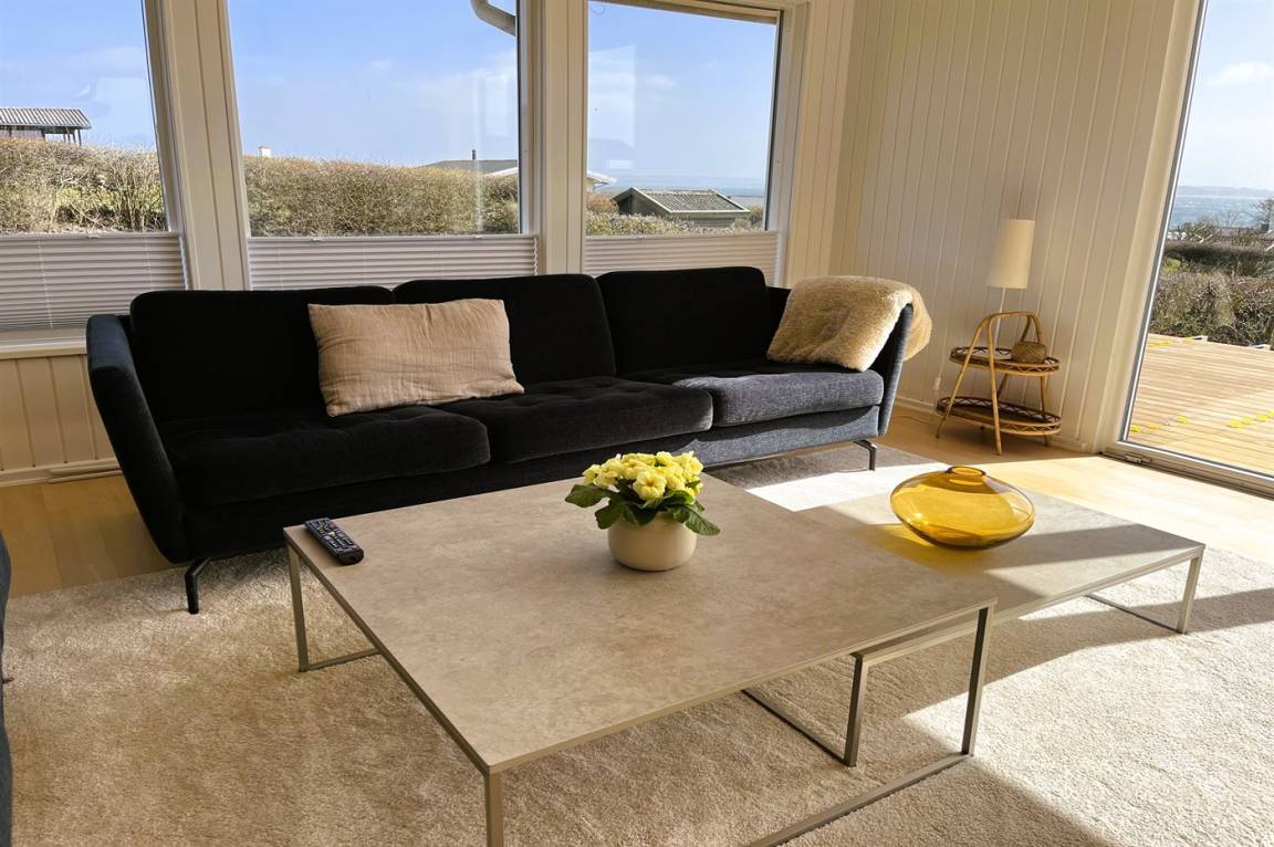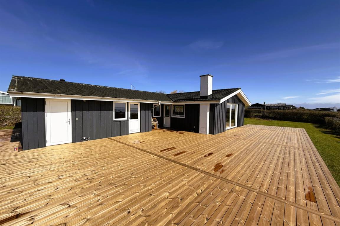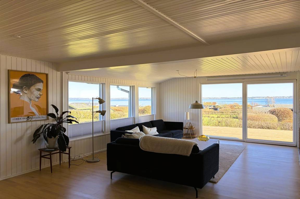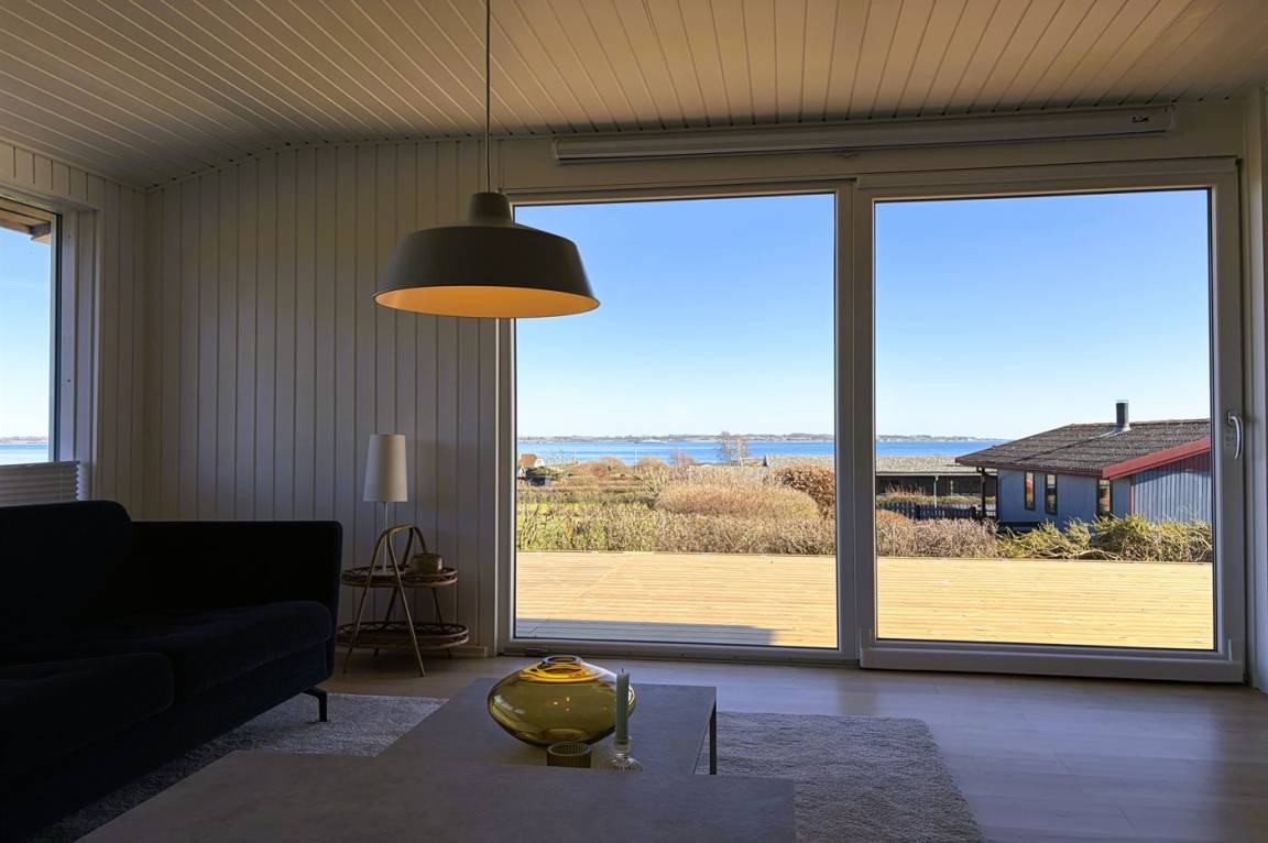Schönes Ferienhaus mit einer fantastisch schönen Aussicht über das Wasser – sowohl vom Haus als auch von der großen Terrasse vor dem Haus.