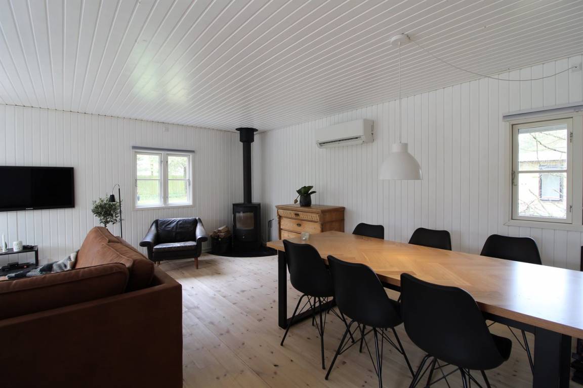EinrichtungDas Ferienhaus eignet sich für 6 Personen sowie 1 Kleinkind bis zu 3 Jahren. Die Ferienunterkunft hat eine Wohnfläche von 105 m², ist 2-stöckig, und wurde 1982 gebaut. 2021 wurde die Ferienunterkunft teilweise renoviert. Es ist erlaubt 2 Haustiere mitzubringen. Die Ferienunterkunft ist mit einer energiebesparenden Wärmepumpe/Klimaanlage ausgestattet. Die Ferienunterkunft ist mit Waschmaschine ausgestattet. Wäschetrockner. Tiefkühlmöglichkeit mit 30 Liter Nutzinhalt. Es gibt außerdem einen Kaminofen. Für die jüngsten Feriengäste ist 1 Kinderhochstuhl vorhanden.