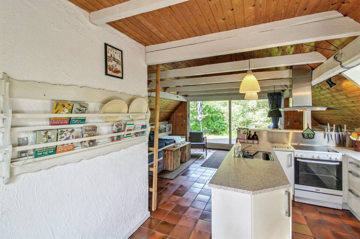 Das Ferienhaus, das teilweise im Originalzustand erhalten ist, ist angesichts seines Alters sehr gut gepflegt. Von der schönen Terrasse aus kann man die wunderschöne und ruhige Umgebung völlig ungestört genießen, was angesichts der zentralen Lage des Hauses in Ebeltoft etwas ganz Besonderes ist. Auf dem Grundstück befindet sich auch eine gemütliche Windschutzhütte mit Glasfenstern - hier fühlt man sich völlig mit der Natur verbunden.