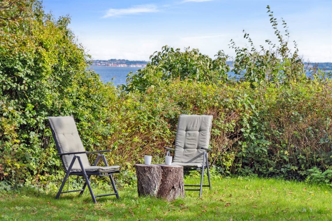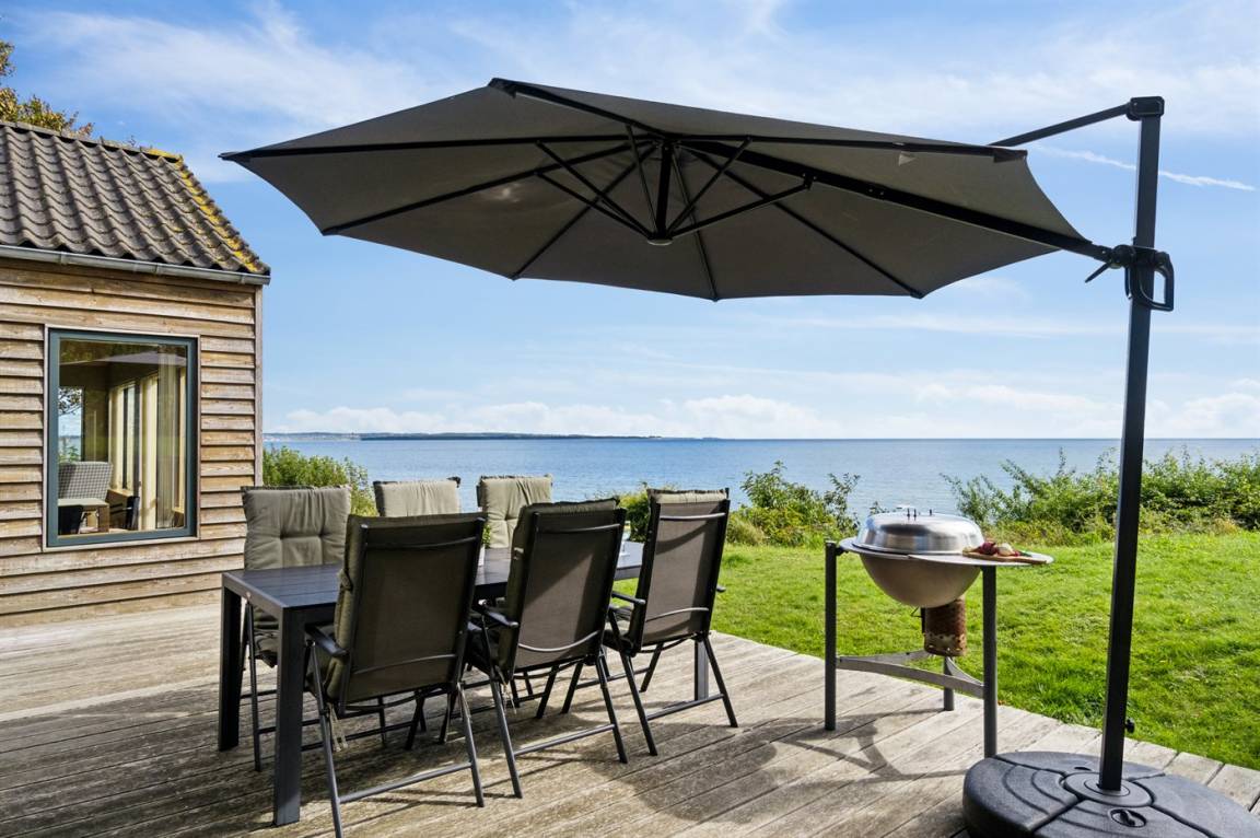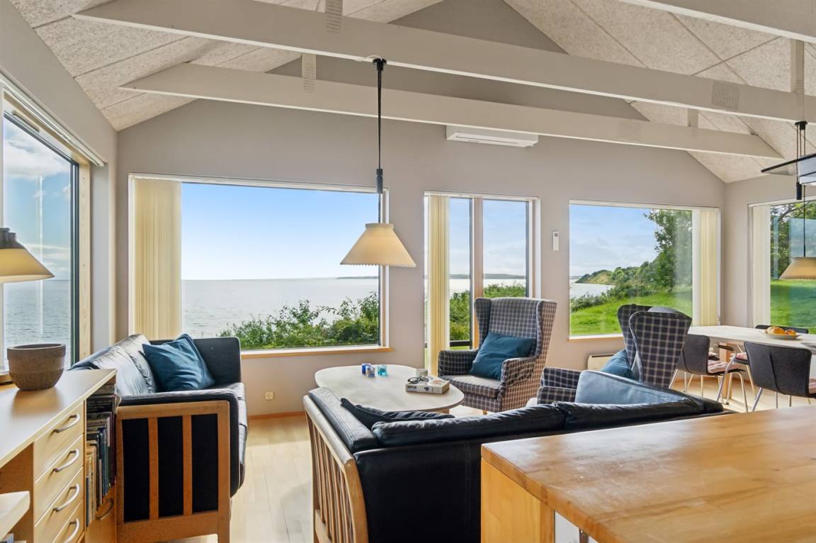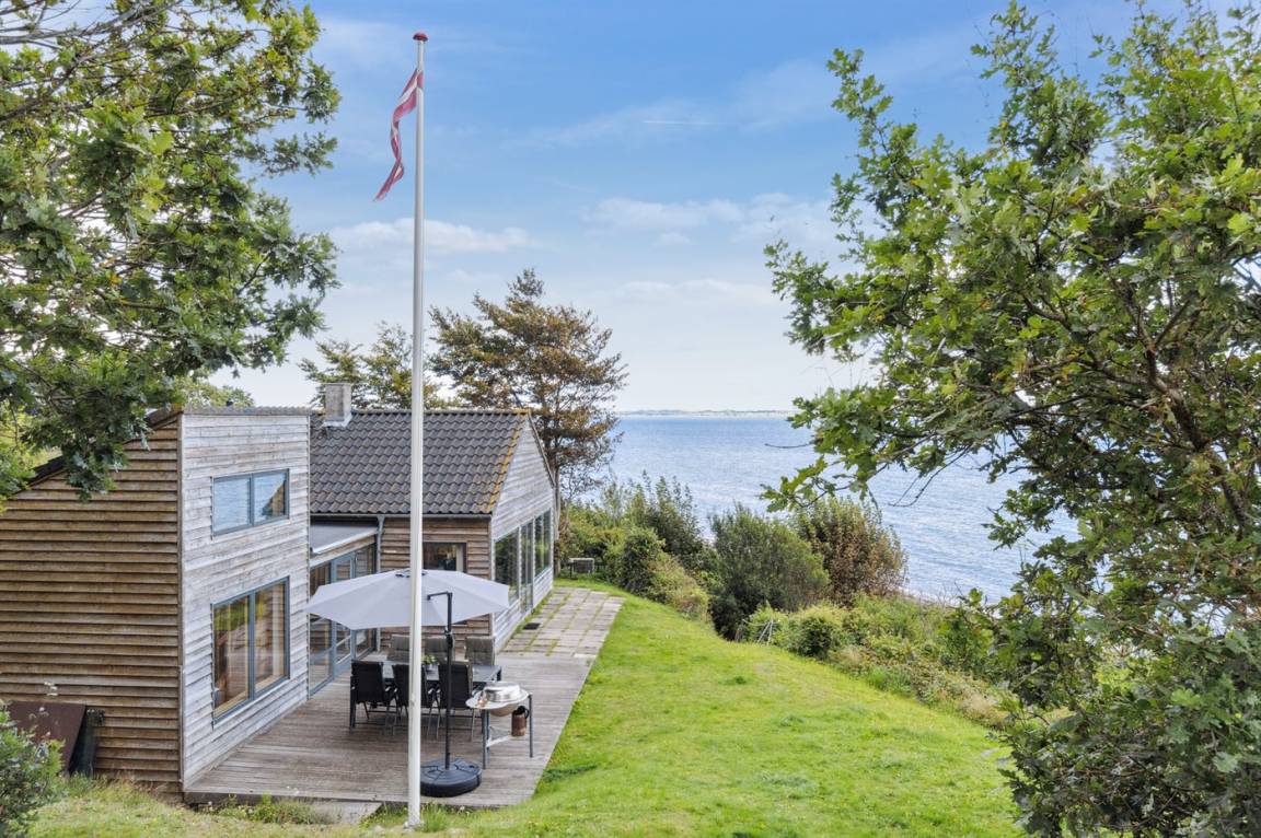 Schönes Ferienhaus in absoluter erster Reihe am Fuglsø Strand. Das Haus bietet einen traumhaften Blick über die Ebeltoft-Bucht und hat einen direkten Zugang zum feinen Sandstrand direkt davor. Hier kann man gar nicht anders, als von der Aussicht begeistert zu sein.