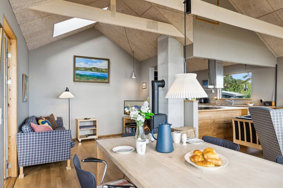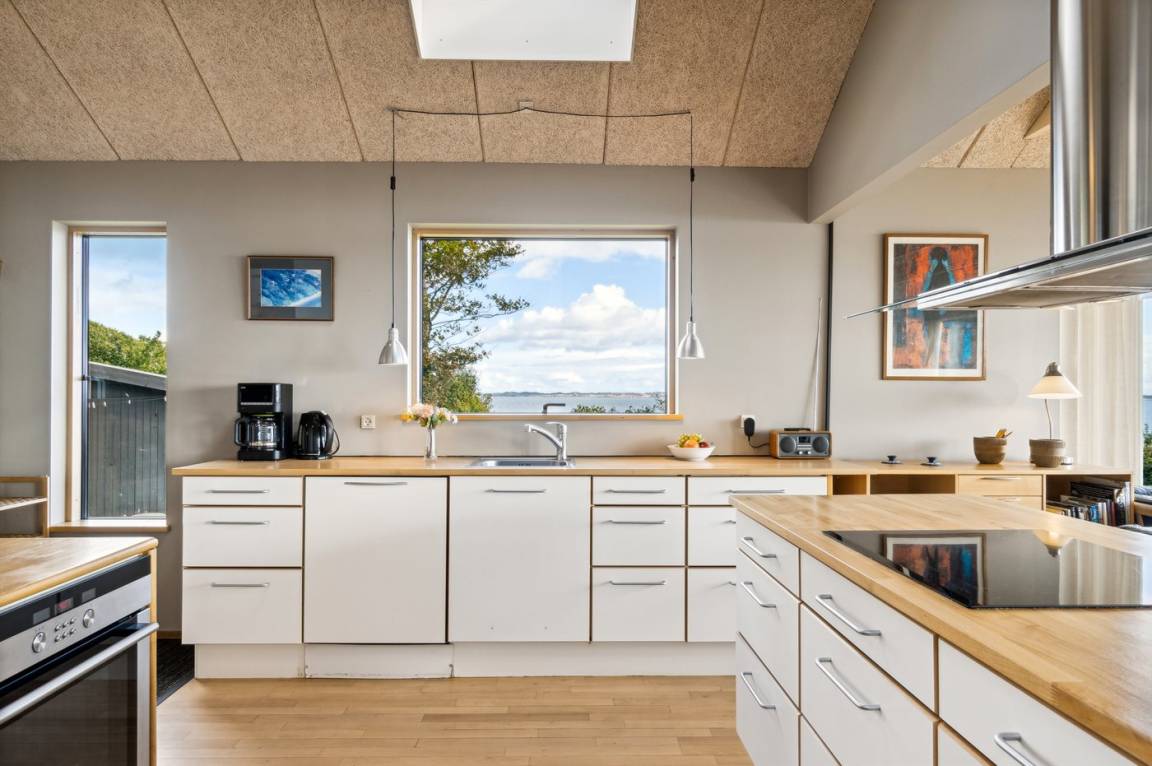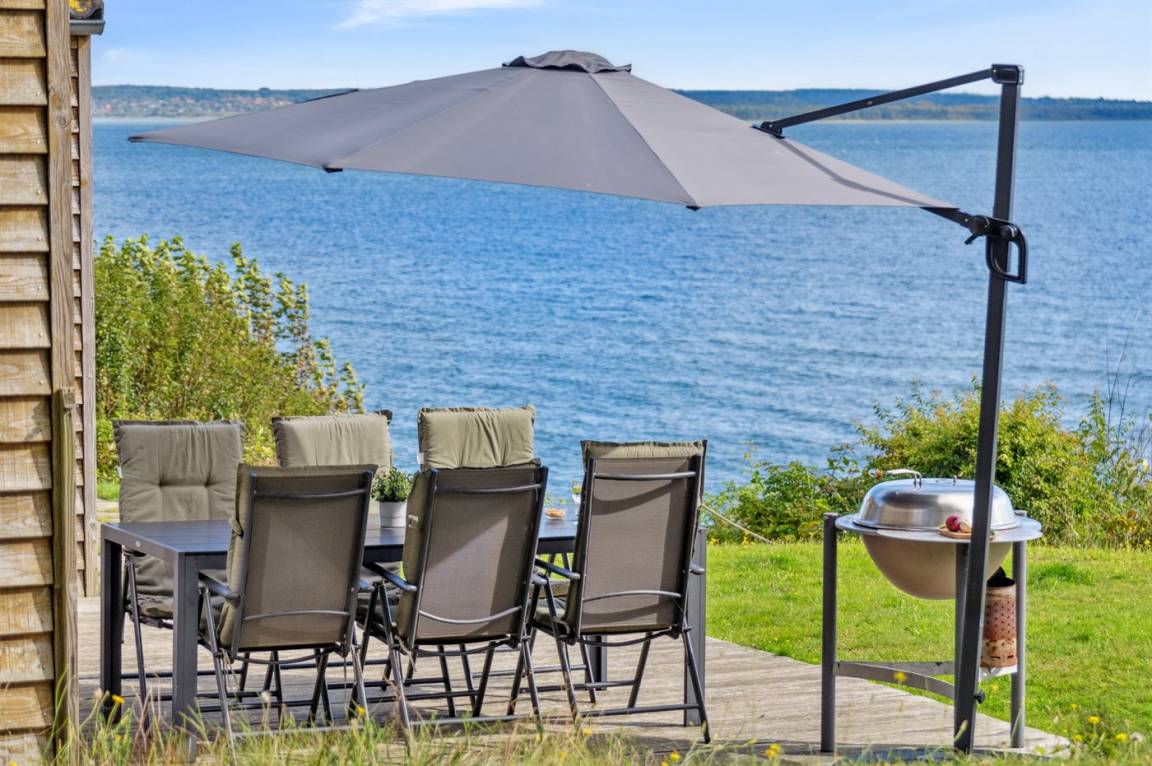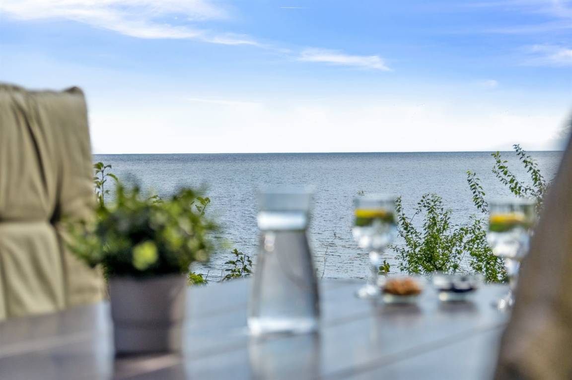 Schönes Ferienhaus in absoluter erster Reihe am Fuglsø Strand. Das Haus bietet einen traumhaften Blick über die Ebeltoft-Bucht und hat einen direkten Zugang zum feinen Sandstrand direkt davor. Hier kann man gar nicht anders, als von der Aussicht begeistert zu sein.