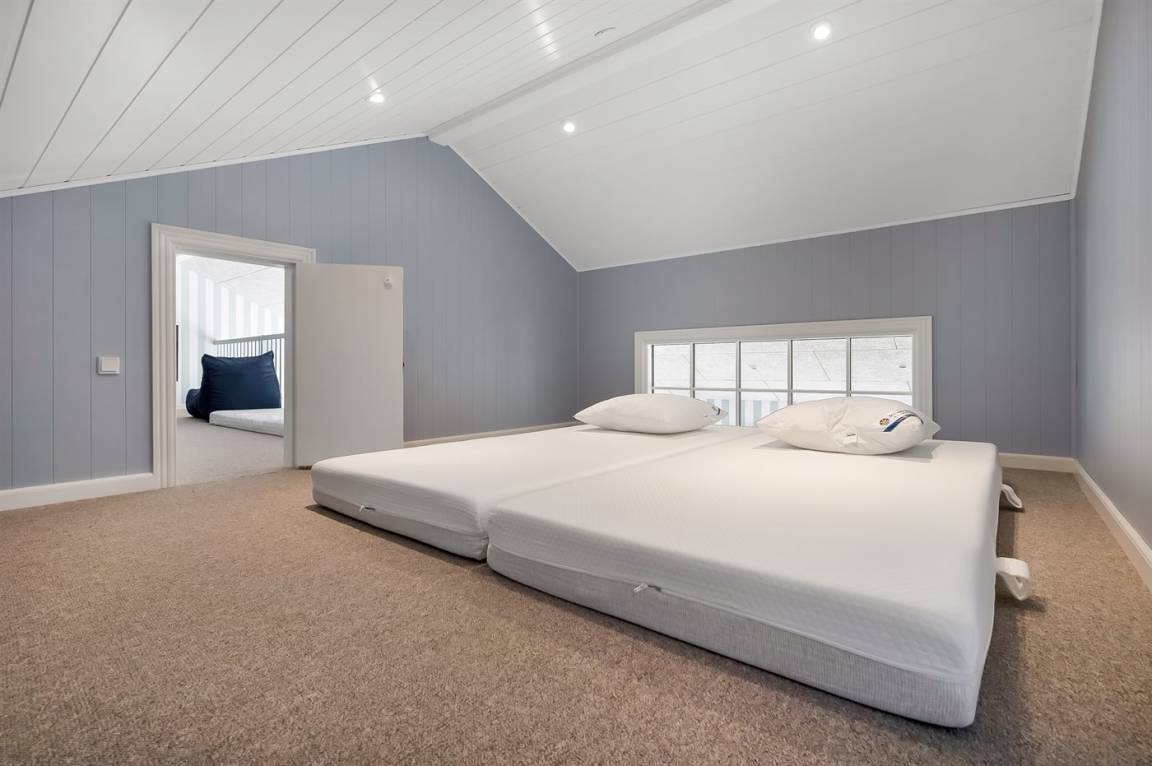 SchlafverhältnisseDie Schlafplätze verteilen sich auf 5 Schlafräume. 8 Schlafplätze in Doppelbetten. 2 Schlafplätze in Einzelbetten. 2 Schlafplätze in einem Etagenbett. 6 Schlafplätze auf Matratzen. 6 von diesen Schlafplätzen befinden sich im offenen Obergeschoss.