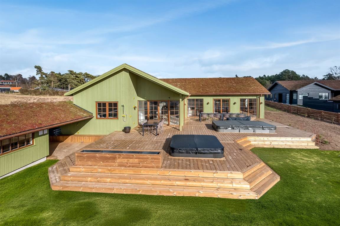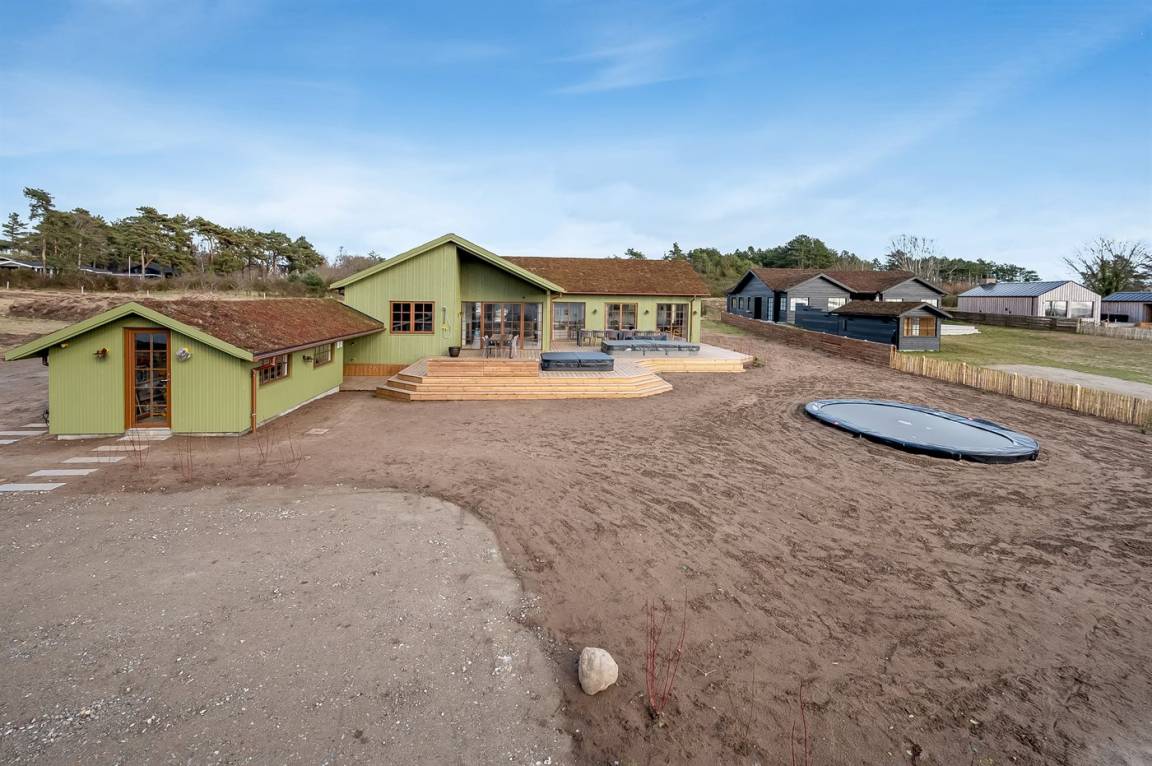 DraußenDie Ferienunterkunft liegt auf einem 1200 m² großen Naturgrundstück. Die Entfernung zum Meer beträgt 650 m. Die nächste Einkaufsmöglichkeit liegt 1500 m entfernt. In einem Abstand von 4000 m gibt es einen Golfplatz. Es steht ein offenes Terrassenareal zur Verfügung. Außerdem gibt es überdachte Terrasse. Trampolin. Die Entfernung zu einem Spielplatz beträgt 1500 m. Außensauna. Außendusche. Es steht ein Grill zur Verfügung. Es ist ein Ladestecker für Elektroautos installiert. Ladestecker Typ 2. Mit einer Ladeleistung von 11 kW. Parkplatz auf dem Grundstück.