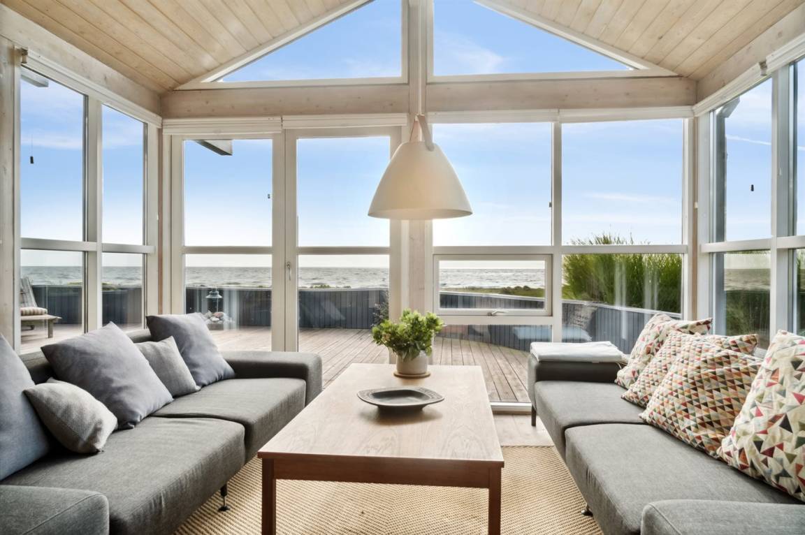 Dieses schöne Ferienhaus liegt direkt am Kattegat und bietet einen 180-Grad-Panoramablick auf das Meer, der sich sowohl von der herrlichen Terrasse als auch von innen im Ferienunterkunft erstreckt. Selbst in den meisten Schlafzimmern kann die großartige Aussicht genossen werden - eine bessere Lage ist einfach schwer zu finden.