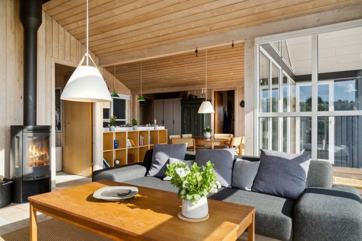 Das Ferienhaus ist gut ausgestattet und eignet sich sehr gut für zwei Familien, da es 8 Schlafplätze gibt. Das Herz des Hauses ist die große Küche/Esszimmer und das Wohnzimmer in einem, wo der Ausblick herrlich ist, egal ob man ihn von der Küche oder dem Wohnzimmer aus genießt. Die großen Fenster umrahmen die Aussicht und lassen viel Licht herein. Die Gegend lädt zu Spaziergängen und Fahrradtouren in der schönen Natur ein, und wenn man einen Kontrast zu dieser ruhigen Umgebung wünscht, liegt Ebeltoft nur etwa 7 km entfernt, wo es eine große Auswahl an Restaurants und Eisdielen gibt, u.a.