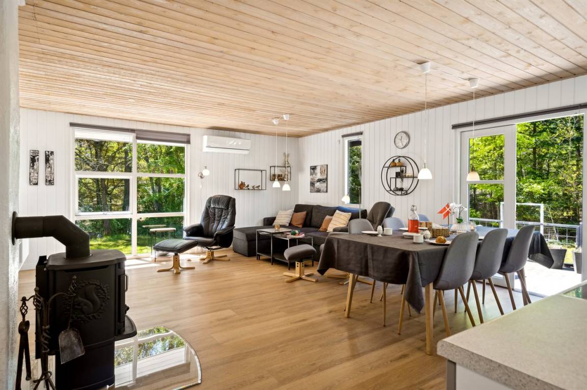 In einem herrlichen und naturschönen Gebiet, dicht an der gemütlichen Stadt Ebeltoft, finden Sie dieses gepflegte Ferienhaus auf einem schönen Naturgrundstück. Das Haus ist über die Jahre modernisiert und enthält u.a. einen großen Flur mit Garderobe. Draußen gibt es Fußballtor, Badmintonnetz/Schläger, Stangentennis, Wikingerspiel u. a. m. Zum Haus gehören 3 Terrassen, wovon die eine im Garten liegt. Kostenloses Brennholz sowie Fahrräder (6 Stück – für den Zustand der Räder wird keine Haftung übernommen) zur freien Nutzung.