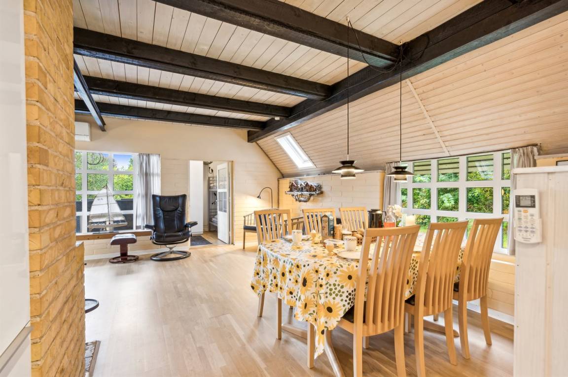 Das Haus liegt nur etwa 300 Meter vom Wasser entfernt, mit den guten Badestränden, die die Gegend bietet, und Ebeltoft, das einen großen Kontrast zu dem ruhigen Ferienhausgebiet bildet, ist nicht mehr als 4 Kilometer entfernt. In Ebeltoft gibt es mehrere beliebte Attraktionen, eine sehr gemütliche Innenstadt voller Ferienatmosphäre und eine große Auswahl an Geschäften, Eisdielen und Restaurants.