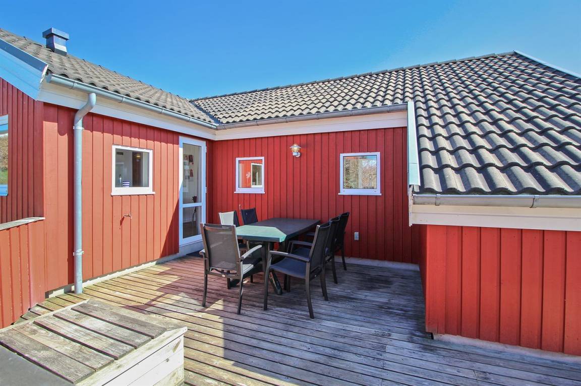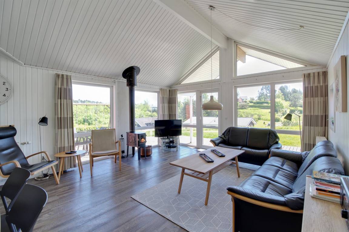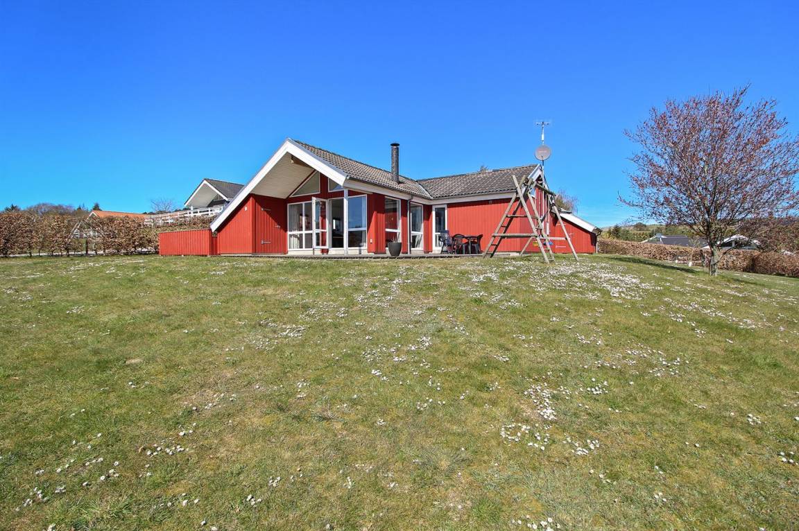 Dieses prachtvolle und besonders gut ausgestattete Luxusferienhaus liegt in den Hügeln bei Femmøller Strand. Es ist aus Holz, 1996 gebaut, und es liegt auf einem hügeligen Naturgrundstück, 800 m von Sandstrand entfernt.