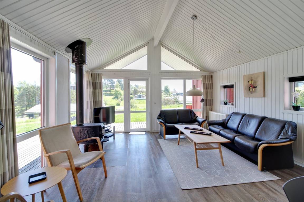 Das gemütliche Wohnzimmer enthält Kaminofen, Radio, Stereoanlage mit CD-Spieler sowie 42" Flatscreen-TV mit Satellitenanschluss, Chromecast, DVD-Spieler, Playstation4 und Video. Kostenlose, kabellose Internetverbindung vorhanden (Computer muss mitgebracht werden).
