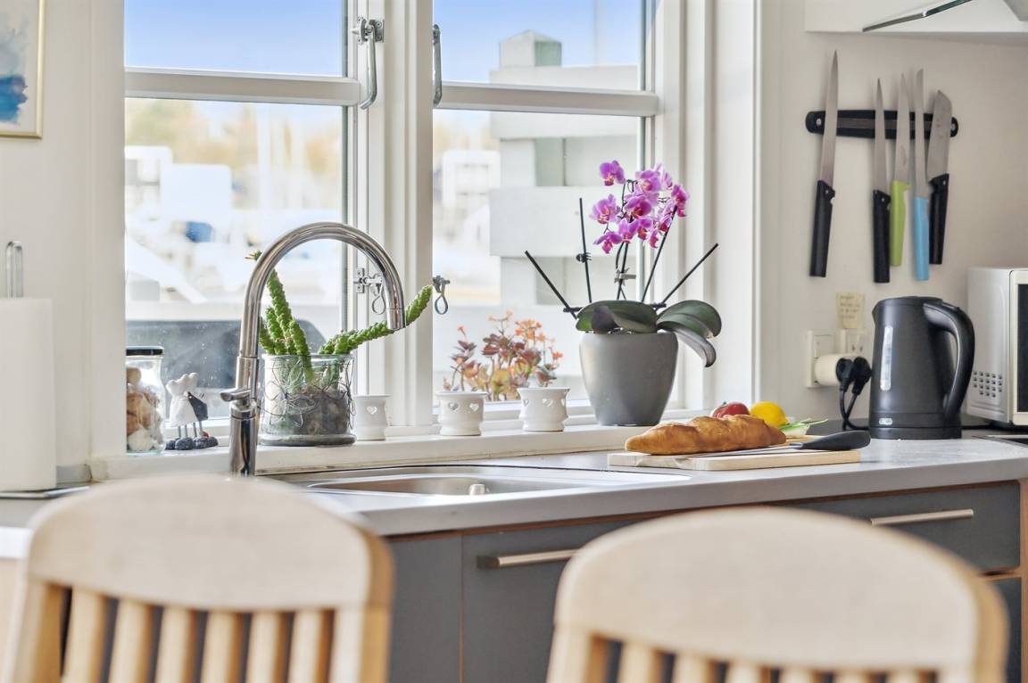 Dieses herrliche Ferienhaus mit Meeresblick liegt in einmaliger Umgebung in Øer maritime Ferieby auf einem 150 m² großen Grundstück direkt am Wasser und an der maritimen Hafenanlage. Zum Haus gehört ein großes abgeschirmtes Terrassenareal mit Gartenmöbeln.