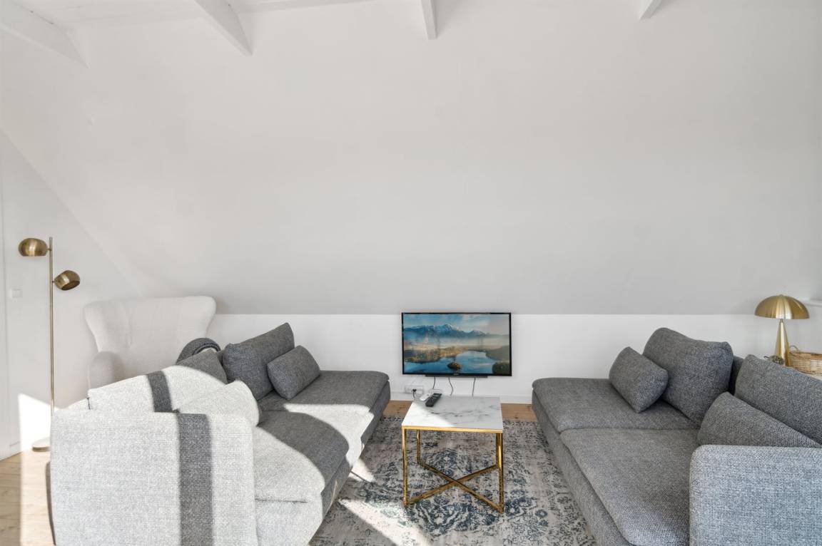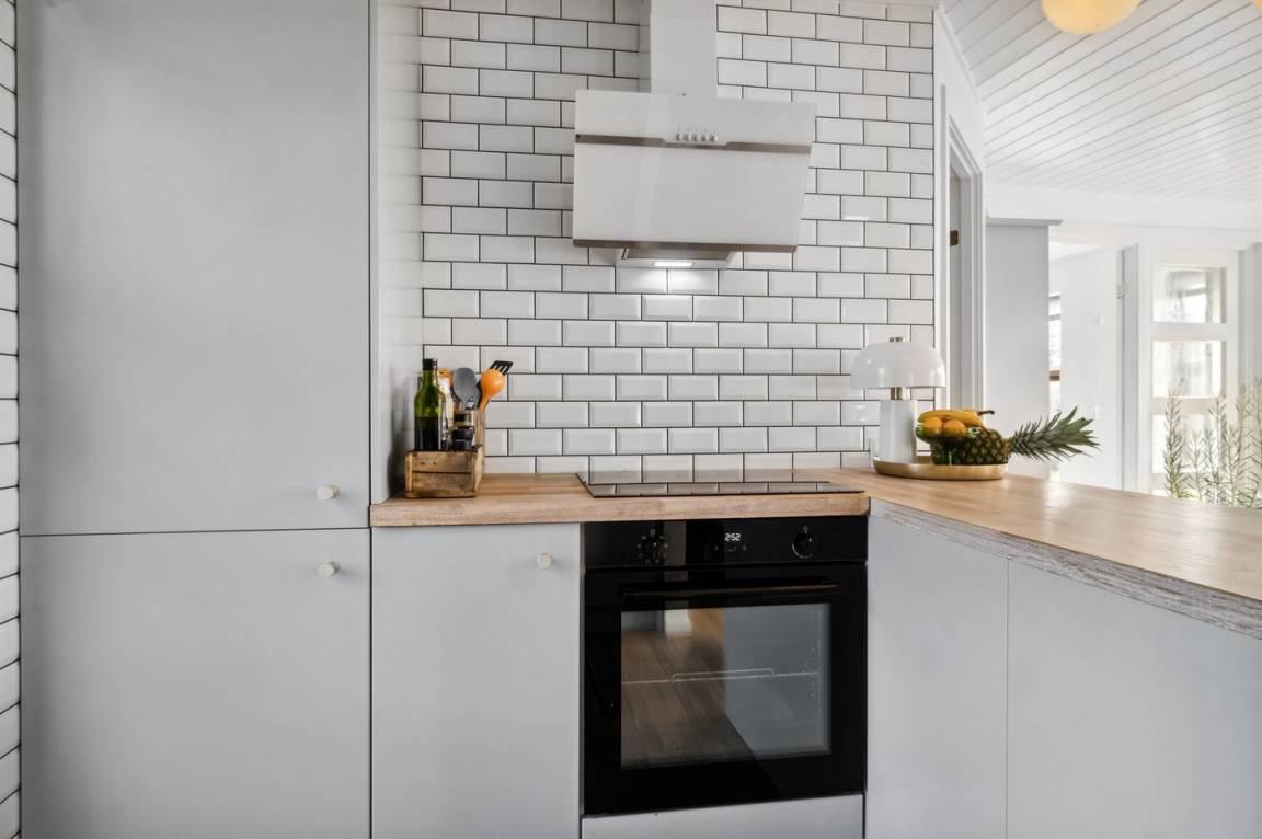 Im Erdgeschoss findet man ein großes, helles Wohn- und Esszimmer in offener Verbindung zur Küche, mit einem Essbereich für 8 Personen und Zugang zur Terrasse. Die ganz neue, gut ausgestattete Küche mit viel Arbeitsfläche verfügt über Herd mit Ceran-Feld, Umluftofen, Kühl-/Gefrierschrank und Geschirrspülmaschine.