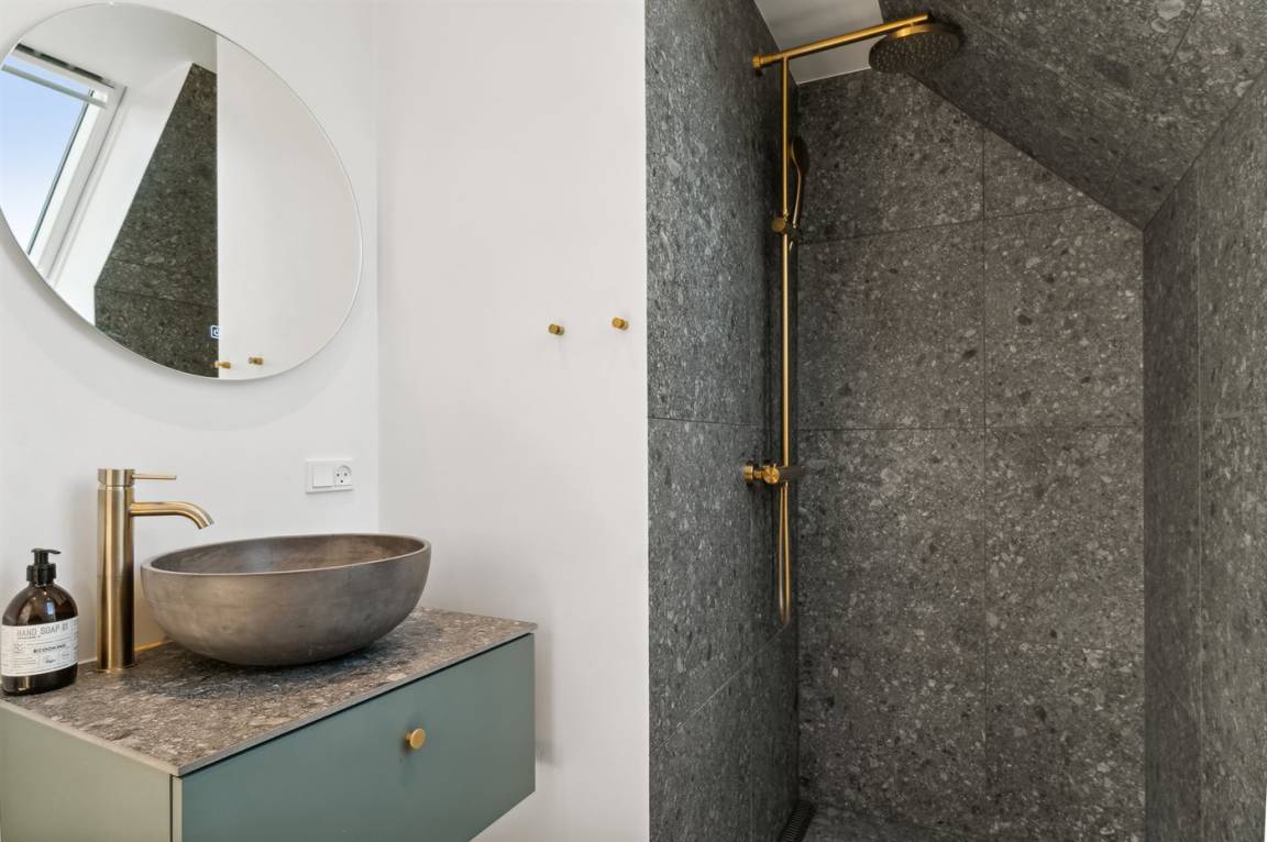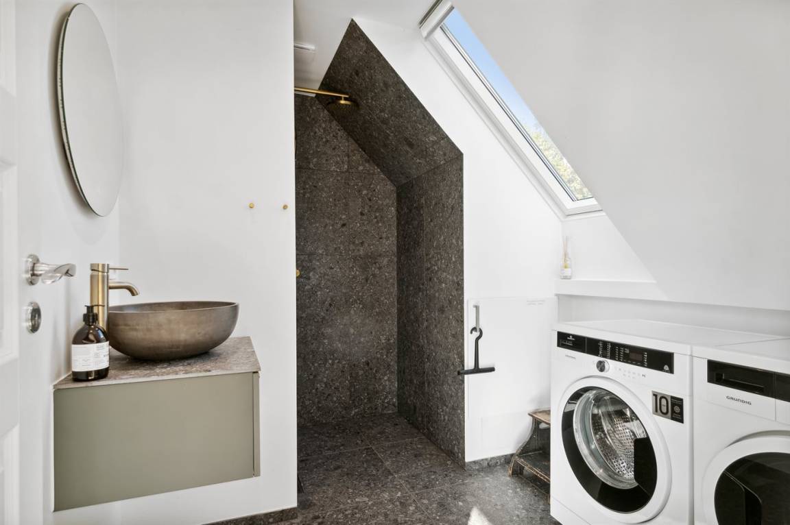 Das Haus verfügt über 2 Badezimmer – ein schönes, neues Badezimmer mit Duschnische im Obergeschoss und ein etwas kleineres, ebenfalls neues Badezimmer mit Duschnische, Waschmaschine und Wäschetrockner im Erdgeschoss. Beide Badezimmer haben Fußbodenheizung. Internetzugang ist vorhanden.