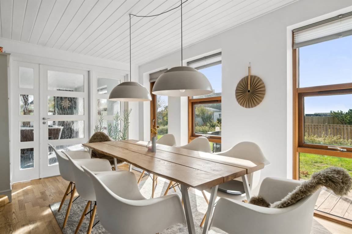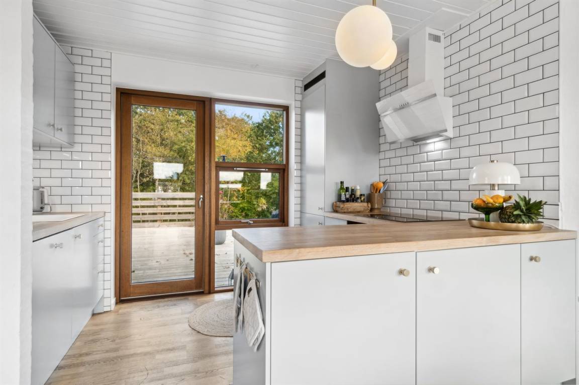 Ein älteres, komplett modernisiertes und außergewöhnlich geräumiges Ferienhaus in 2 Etagen gebaut, das auf einem schönen Naturgrundstück in einem beliebten Gebiet im nördlichen Ebeltoft liegt – nur 250 m vom kinderfreundlichen Sandstrand in der Bucht "Ebeltoft Vig" entfernt.