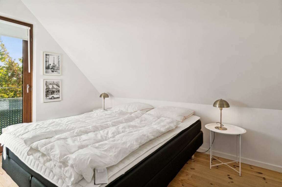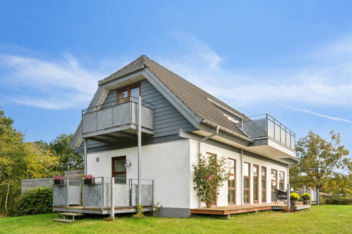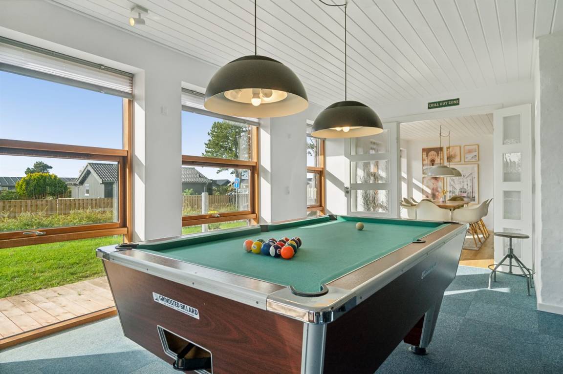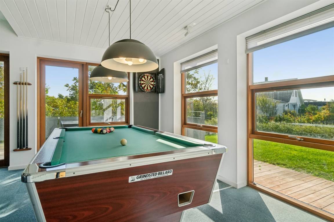 Angrenzend an das Wohnzimmer und durch eine Glastür getrennt, liegt der große Multifunktionsraum mit u. a. Billardtisch und Darts. Von hier führt eine Wendeltreppe in das Obergeschoss, das mit einem gemütlichen Wohnzimmer mit Meerblick und Zugang zum Balkon, bequemen Sofas, einem TV mit dänischen (inkl. TV2) und deutschen Fernsehsendern sowie einem Radio ausgestattet ist. Die 8 Schlafplätze verteilen sich auf 4 gemütliche, helle Schlafzimmer mit Doppelbetten – 2 im Erdgeschoss und 2 im Obergeschoss, eines davon mit eigenem Balkon.
