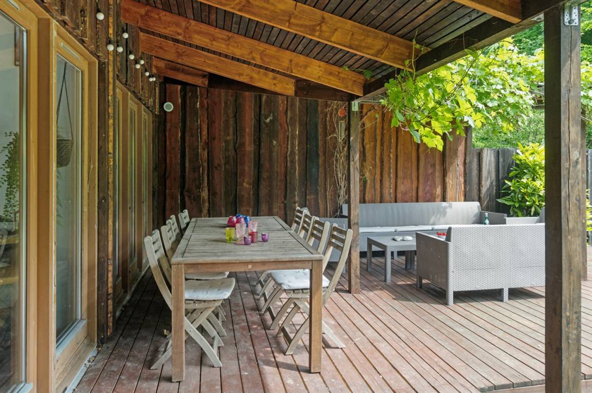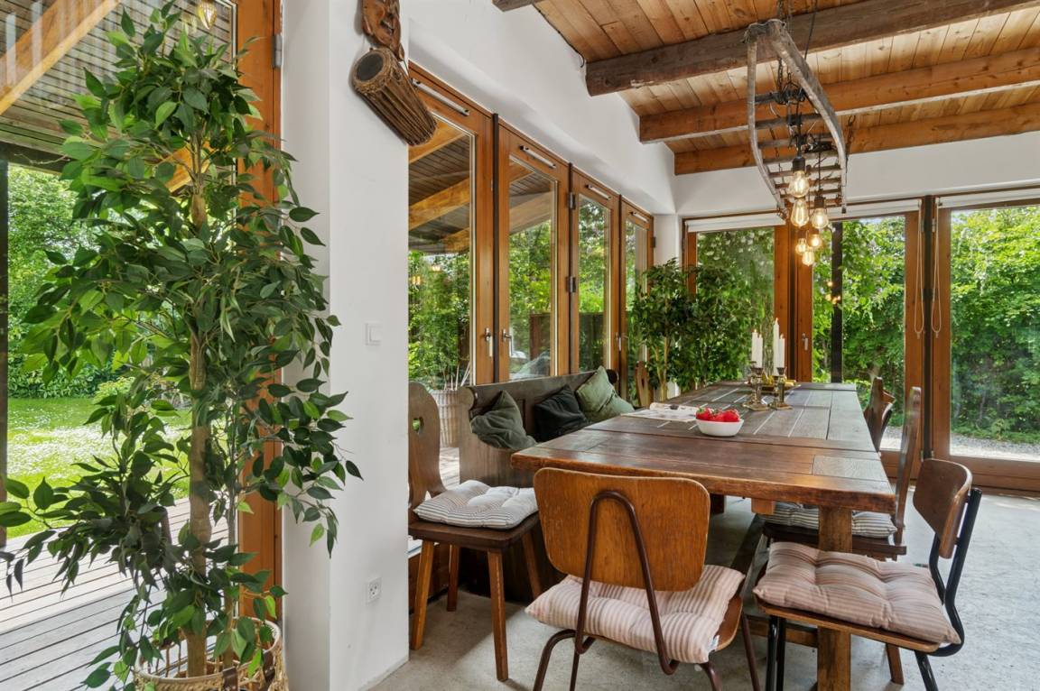 Draußen umgibt der Garten das Haus wie ein grüner Rahmen. Mehrere Terrassen machen es dir leicht, im Laufe des Tages Sonne, Schatten oder Windschutz zu finden. Der Garten ist geschlossen, eingezäunt und ruhig – ein Ort zum Spielen, Entspannen und für einen Hund, der gerne dabei ist.
