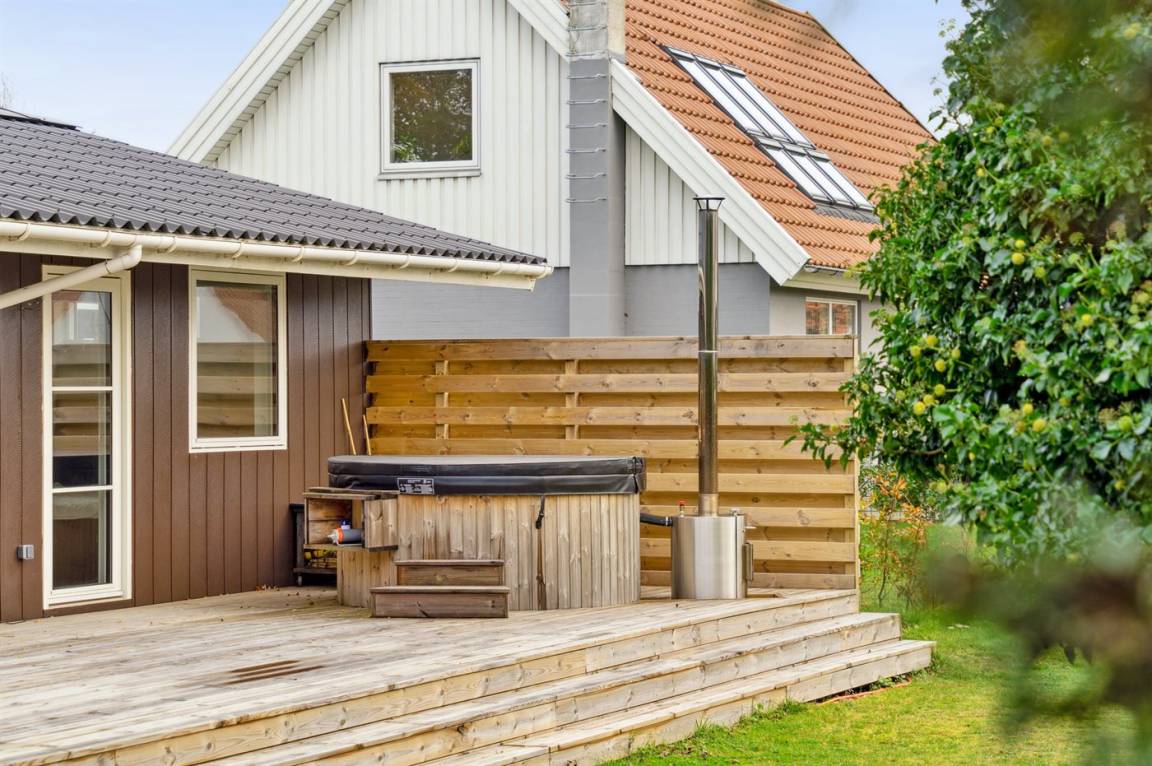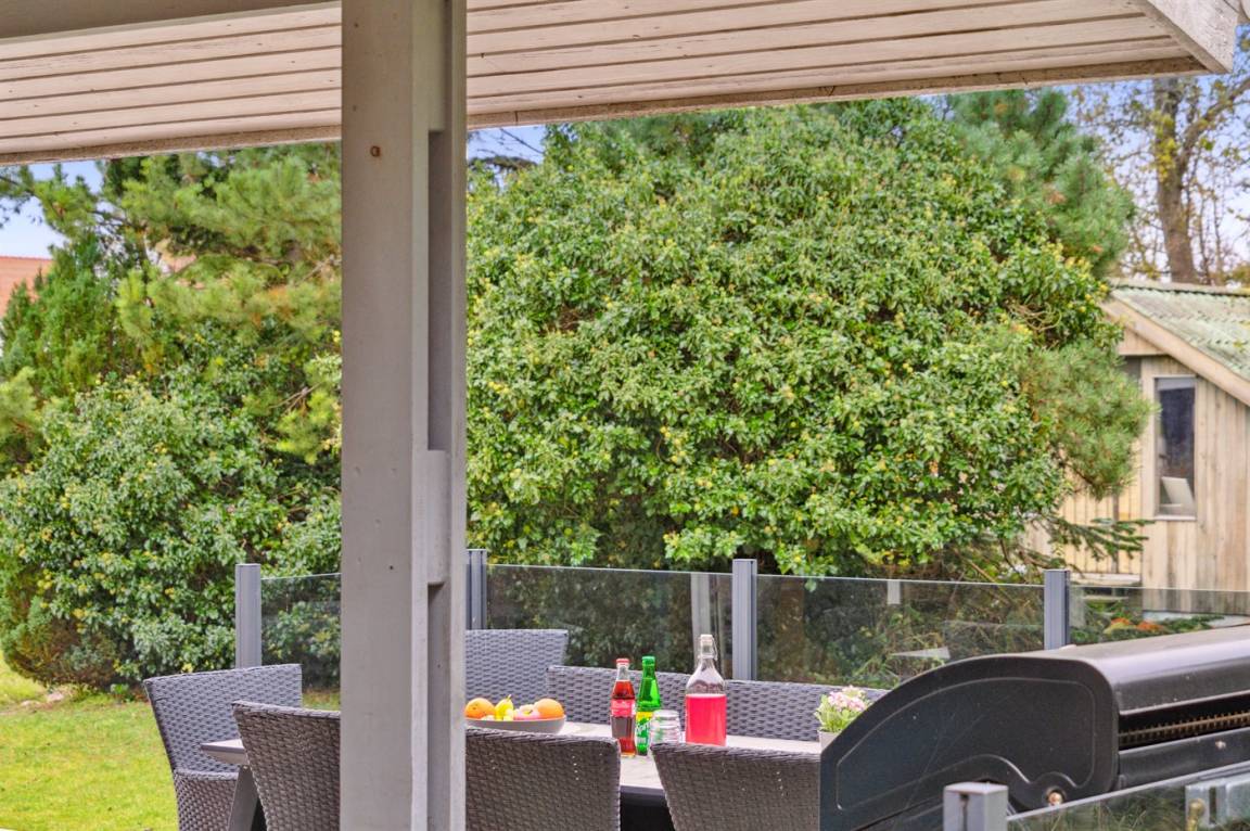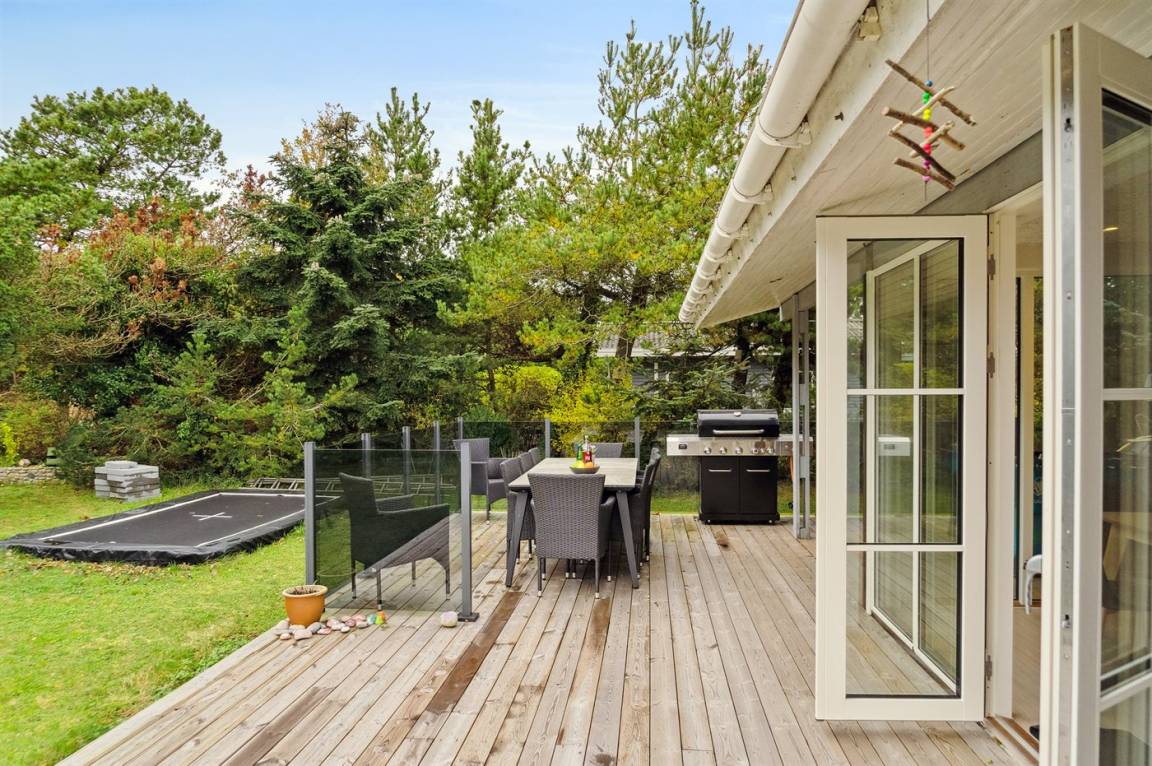 DraußenDie Ferienunterkunft liegt auf einem 1200 m² großen Naturgrundstück. Die Entfernung zum Meer beträgt 250 m. Die nächste Einkaufsmöglichkeit liegt 100 m entfernt. Es steht ein offenes Terrassenareal zur Verfügung. Außerdem gibt es überdachte Terrasse. Trampolin. Fußballtor. Es steht ein Grill zur Verfügung. Es ist ein Ladestecker für Elektroautos installiert. Parkplatz auf dem Grundstück.