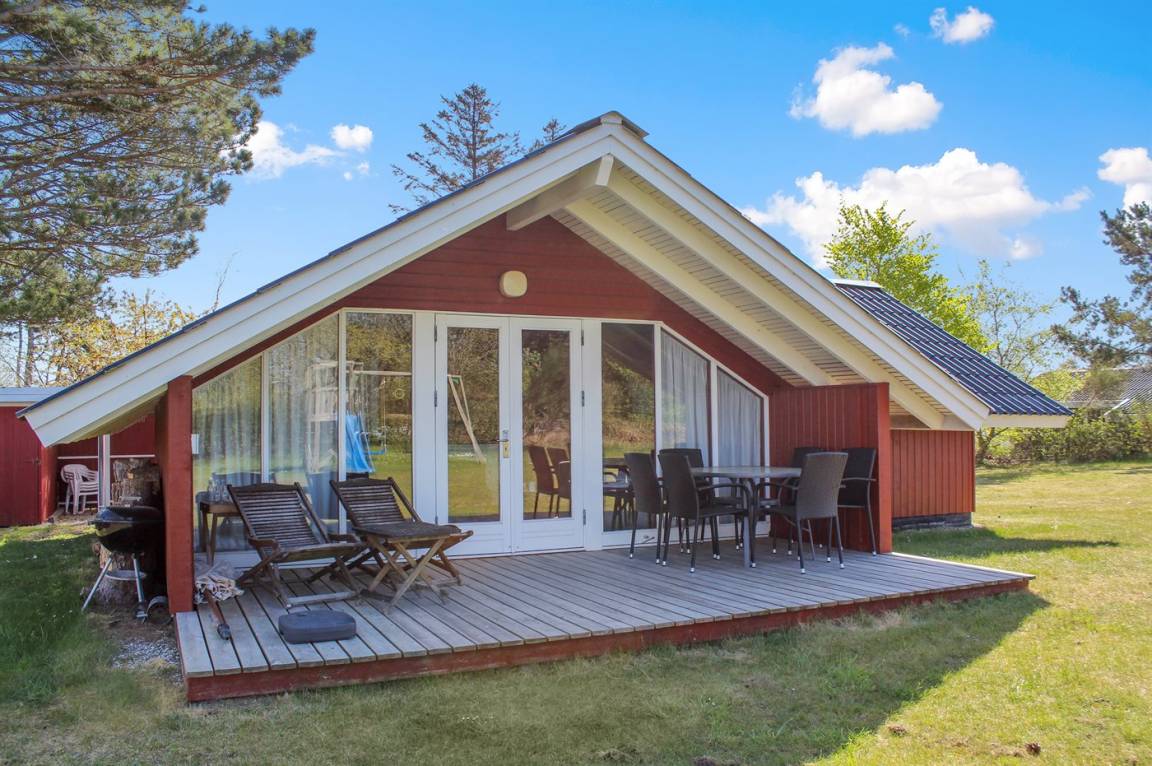 DraußenDie Ferienunterkunft liegt auf einem 1476 m² großen Naturgrundstück. Das Grundstück ist eingezäunt. Das Grundstück ist von einem 60 cm hohen Zaun umgeben. Die Entfernung zum Meer beträgt 800 m. Die nächste Einkaufsmöglichkeit liegt 1200 m entfernt. Es steht ein 20 m² Terrassenareal zur Verfügung. Außerdem gibt es 20 m² überdachte Terrasse. Geräteraum. Schaukel. Sandkasten. Kinderspielhaus. Spielturm. Rutsche. Es steht ein Grill zur Verfügung. Es steht ein Carport zur Verfügung. Parkplatz auf dem Grundstück.