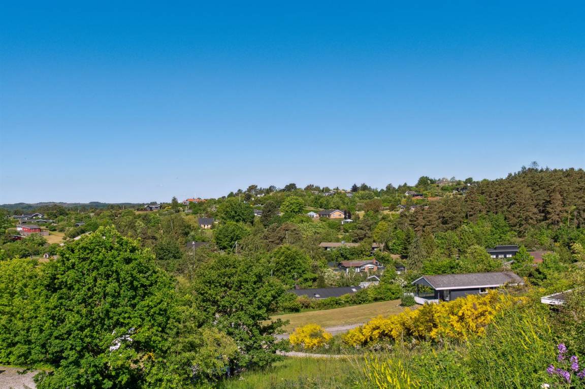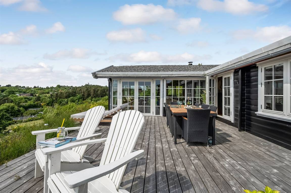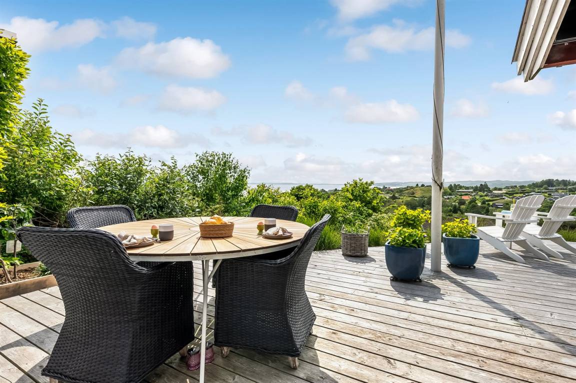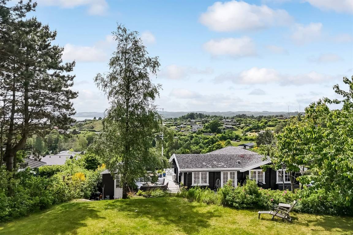 Mit einer phantastischen Aussicht über das Wasser, wo die Stadt Ebeltoft im Hintergrund zu ahnen ist, liegt dieses gemütliche und gepflegte Ferienhaus. Die Aussicht können Sie sowohl vom Haus als auch von der großen Terrasse aus genießen. Das Haus liegt ungestört – in schöner und ruhiger Umgebung und aufgrund der hohen Lage können Sie die schöne Aussicht auf die Umgebung genießen.