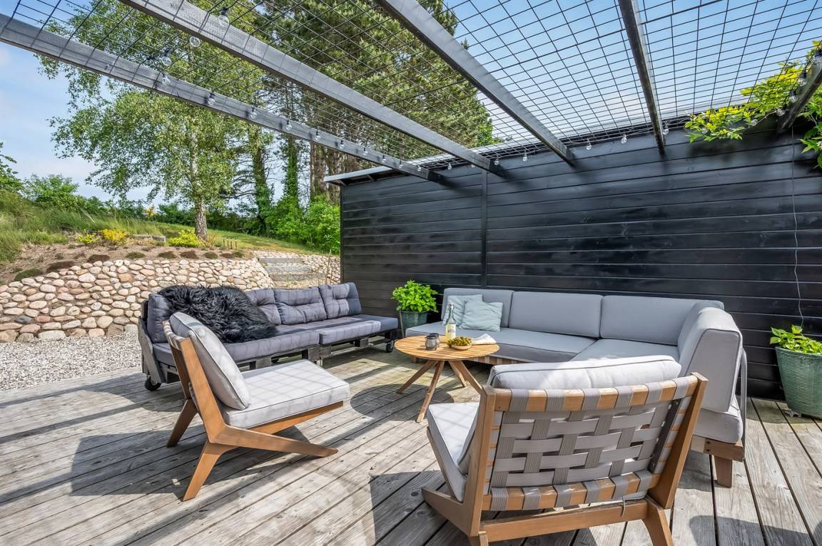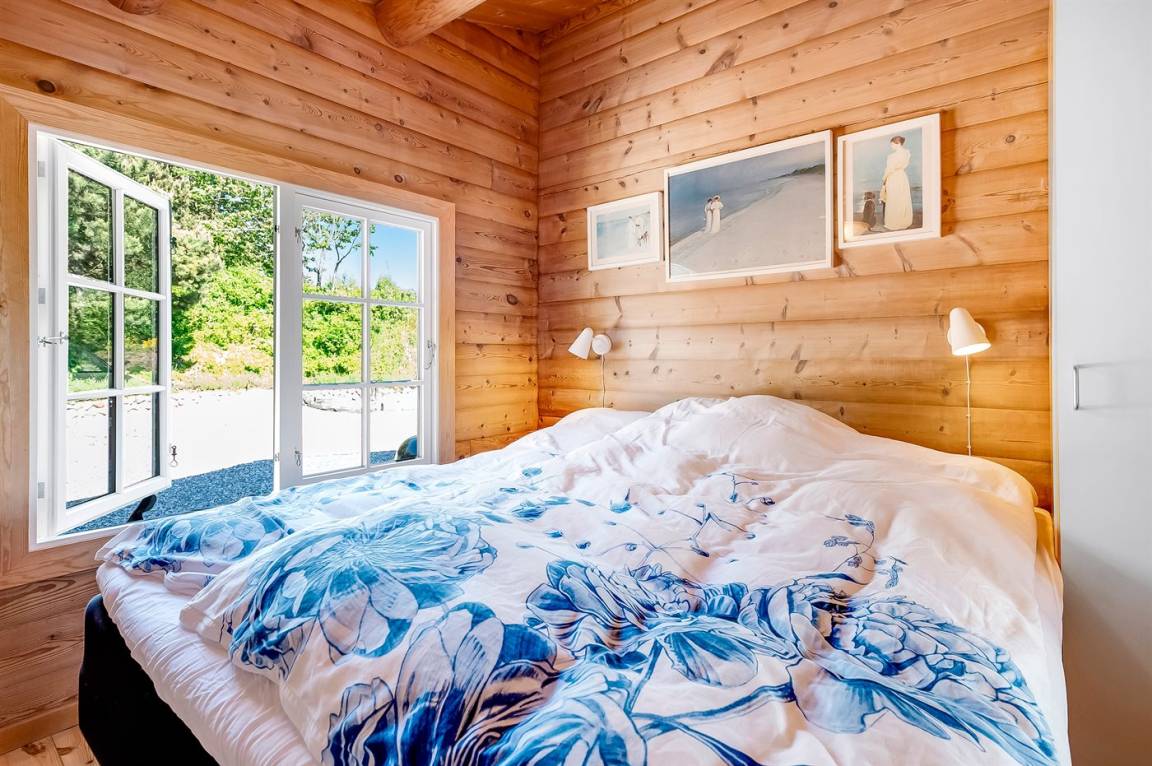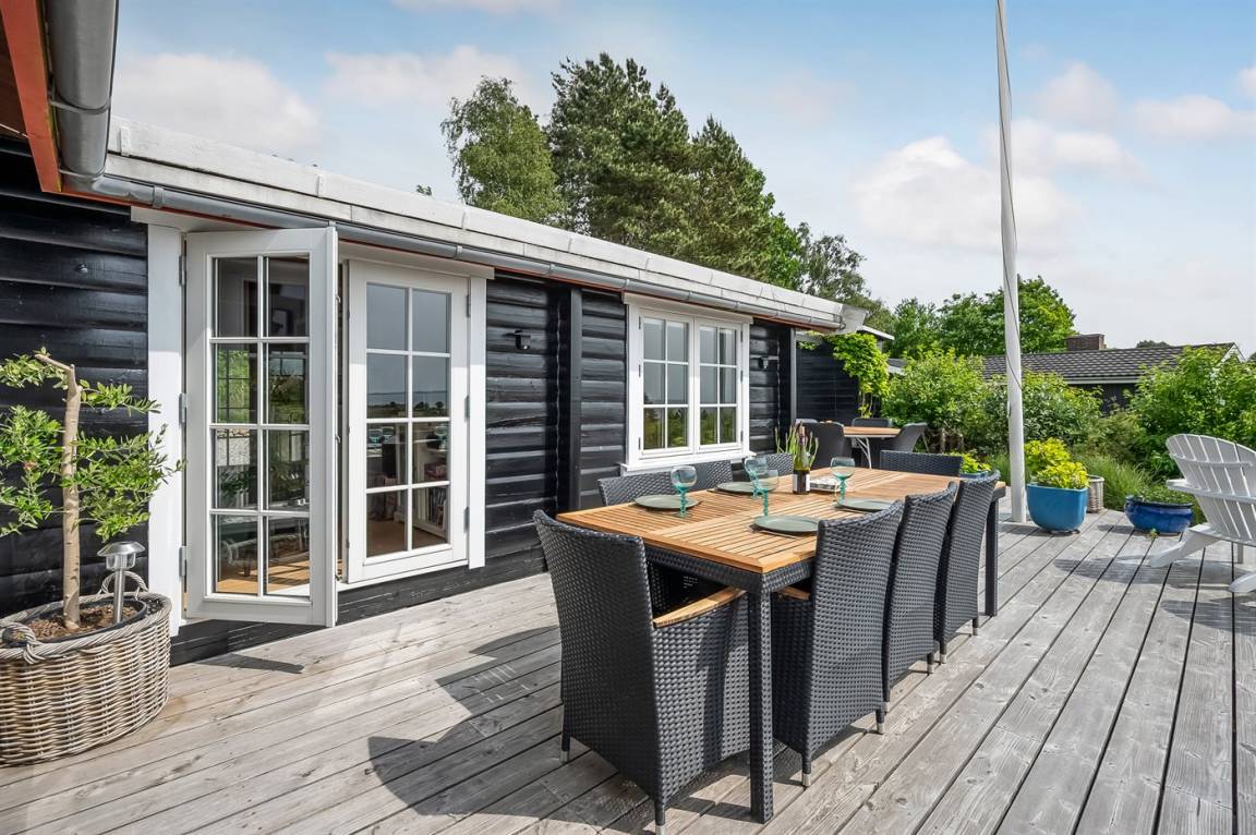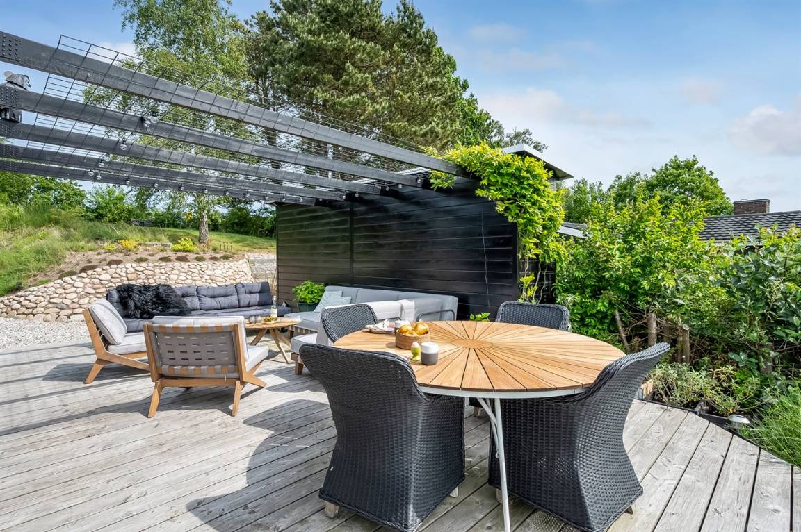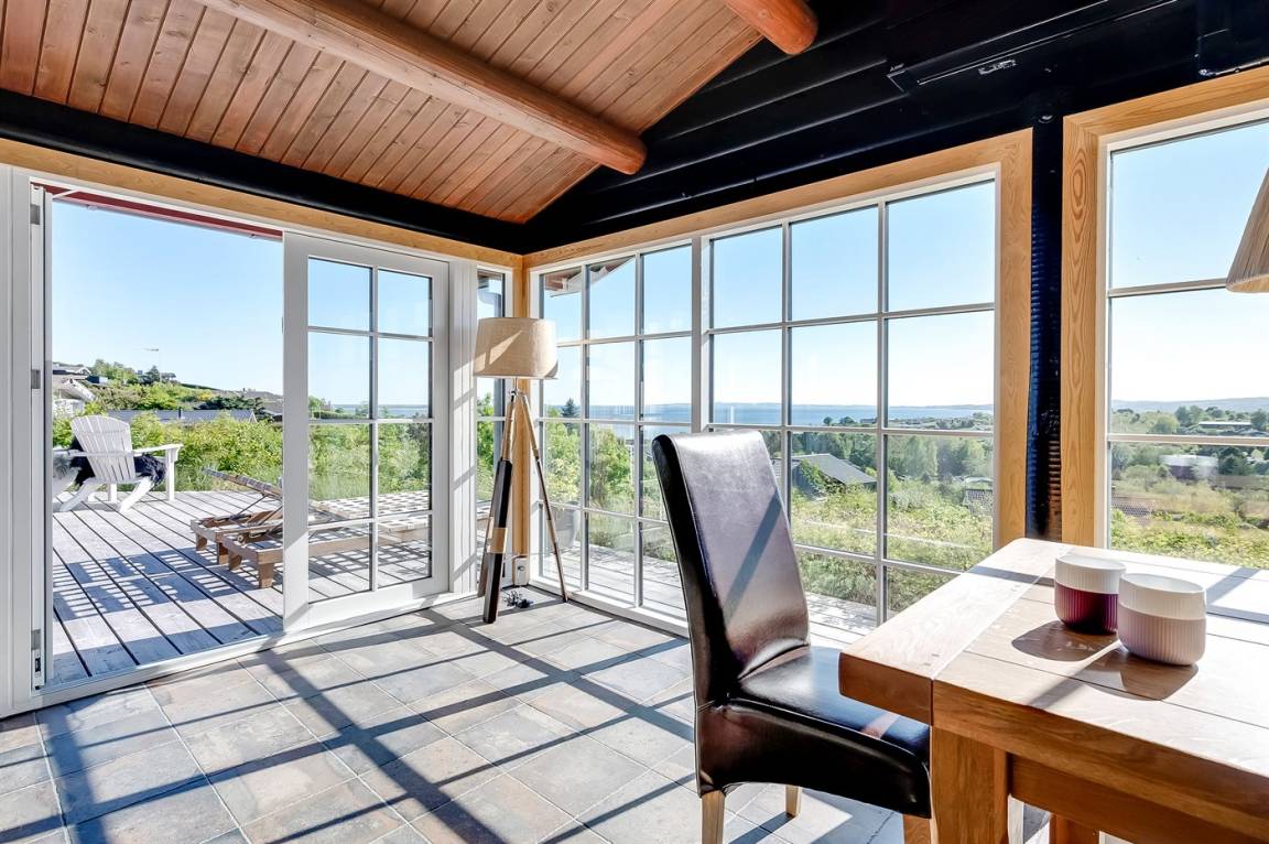 Mit einer phantastischen Aussicht über das Wasser, wo die Stadt Ebeltoft im Hintergrund zu ahnen ist, liegt dieses gemütliche und gepflegte Ferienhaus. Die Aussicht können Sie sowohl vom Haus als auch von der großen Terrasse aus genießen. Das Haus liegt ungestört – in schöner und ruhiger Umgebung und aufgrund der hohen Lage können Sie die schöne Aussicht auf die Umgebung genießen.