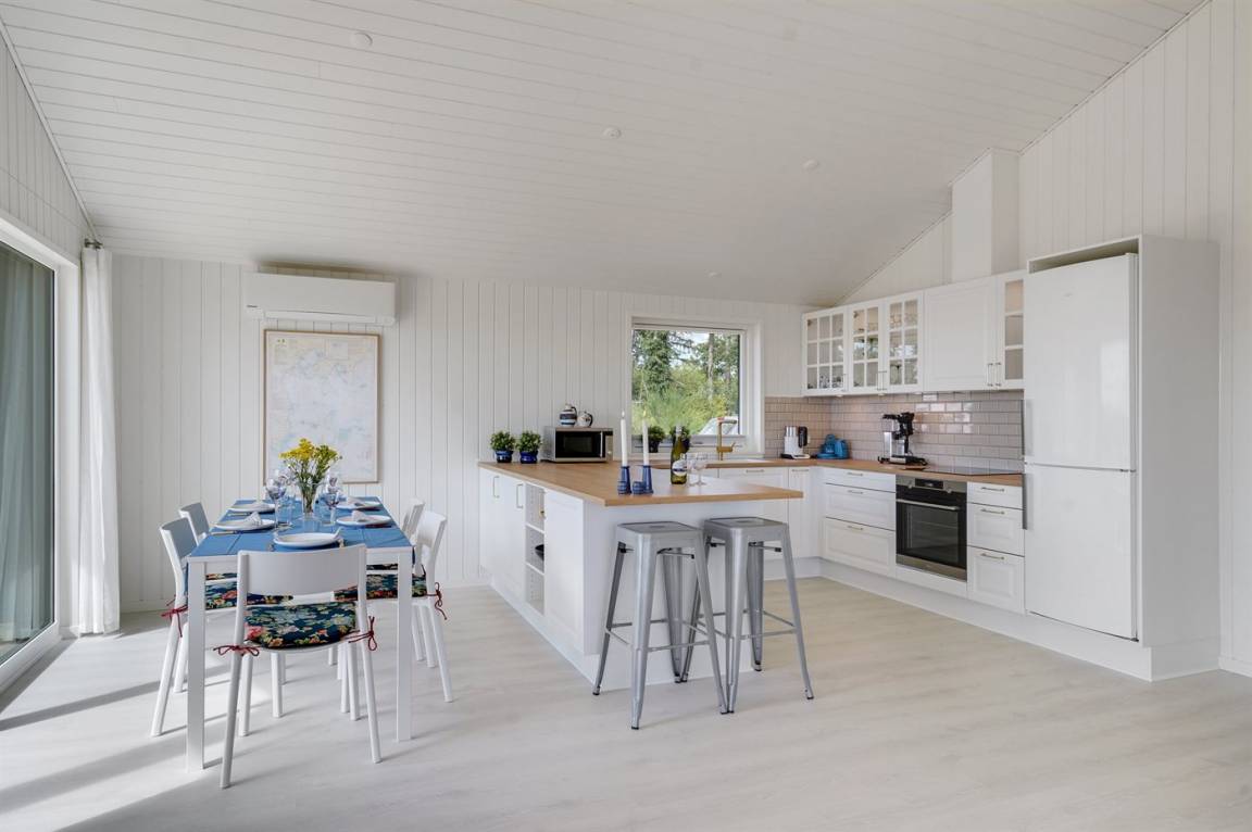 Fantastisches, neues Ferienhaus aus dem Jahr 2022. Das Haus liegt auf einem schönen und großen Grundstück im herrlichen Urlaubsgebiet Øer – nur ca. 7 km von der Ortsmitte von Ebeltoft entfernt. Man hat dank der relativ hohen Lage des Hauses eine herrliche Aussicht auf das Meer – und kann diese sowohl von der schönen Terrasse aus als auch im Haus in vollen Zügen genießen. Die Innenräume des Ferienhauses sind – wie man es von einem neu gebauten Haus erwarten kann – in einem hervorragenden Zustand. Das Haus hat eine Raumaufteilung, die sich gut für eine Familie eignet.