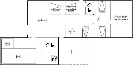 SchlafverhältnisseDie Schlafplätze verteilen sich auf 5 Schlafräume. 10 Schlafplätze in Doppelbetten. 2 Schlafplätze auf Matratzen. 2 von diesen Schlafplätzen befinden sich im offenen Obergeschoss. Ferner stehen 2 Kinderbetten zur Verfügung.