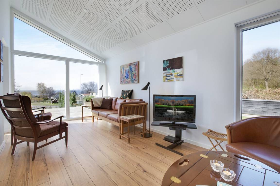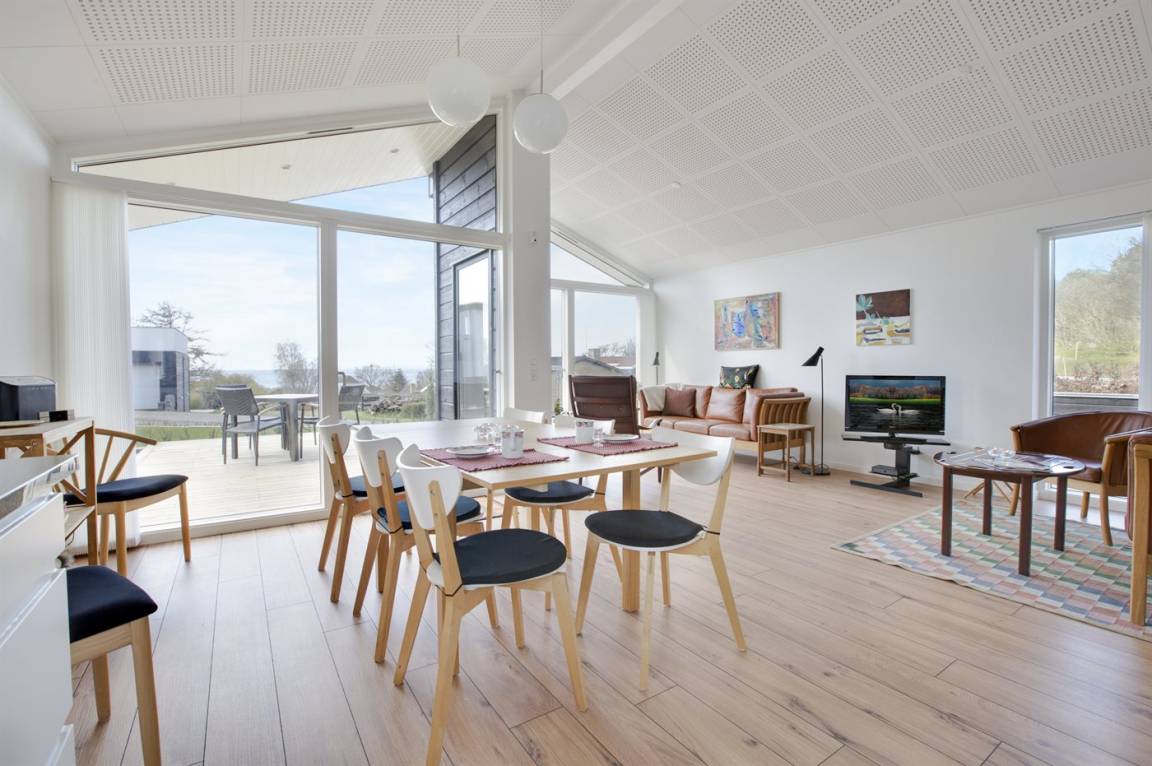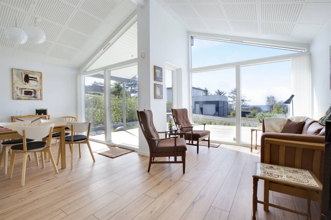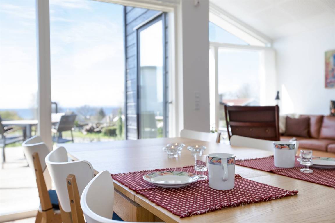 Ein neues und einladendes Ferienhaus mit viel Platz und Ausblick auf das Wasser - sowohl vom Haus als auch vom Grundstück. Das Haus liegt auf einem kleinen, leicht schrägenden Grundstück in einem naturschönen Feriengebiet im Nationalpark Mols Bjerge - nicht weit von einem guten und kinderfreundlichen Badestrand entfernt. Familien mit kleinen Kindern sollten jedoch darauf achten, daß dieses Haus sehr dicht an der Straße liegt.