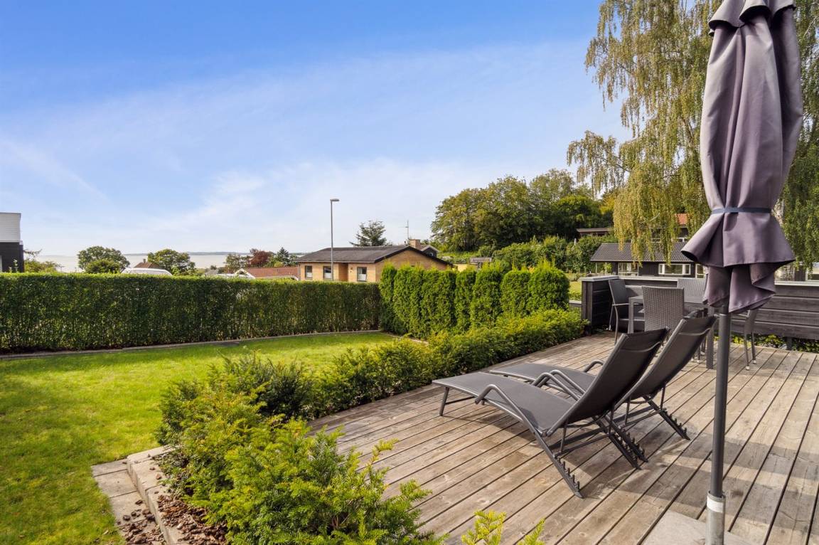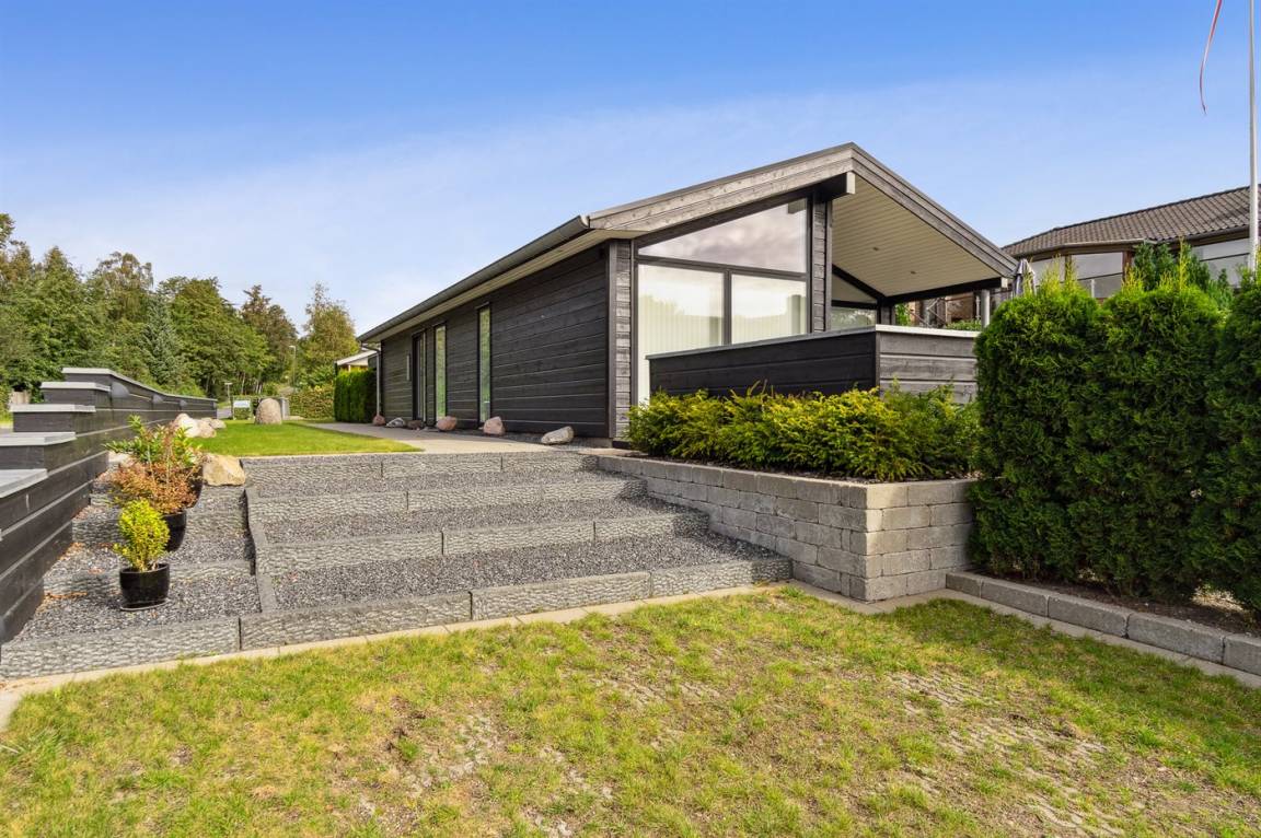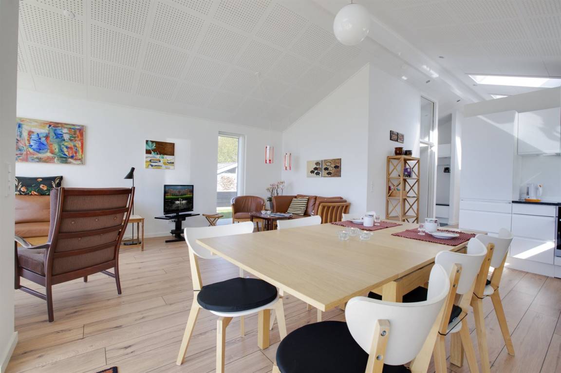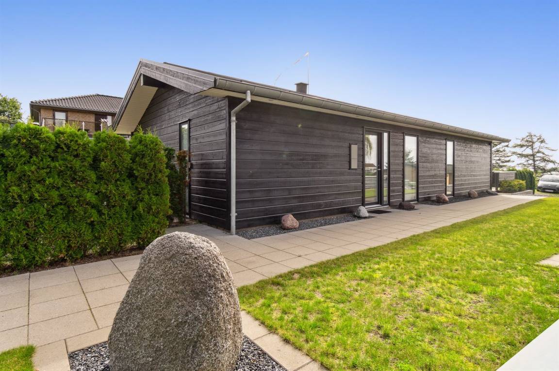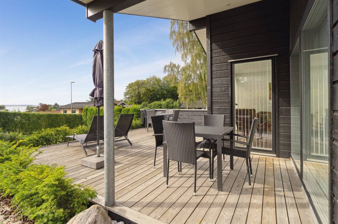 Ein neues und einladendes Ferienhaus mit viel Platz und Ausblick auf das Wasser - sowohl vom Haus als auch vom Grundstück. Das Haus liegt auf einem kleinen, leicht schrägenden Grundstück in einem naturschönen Feriengebiet im Nationalpark Mols Bjerge - nicht weit von einem guten und kinderfreundlichen Badestrand entfernt. Familien mit kleinen Kindern sollten jedoch darauf achten, daß dieses Haus sehr dicht an der Straße liegt.