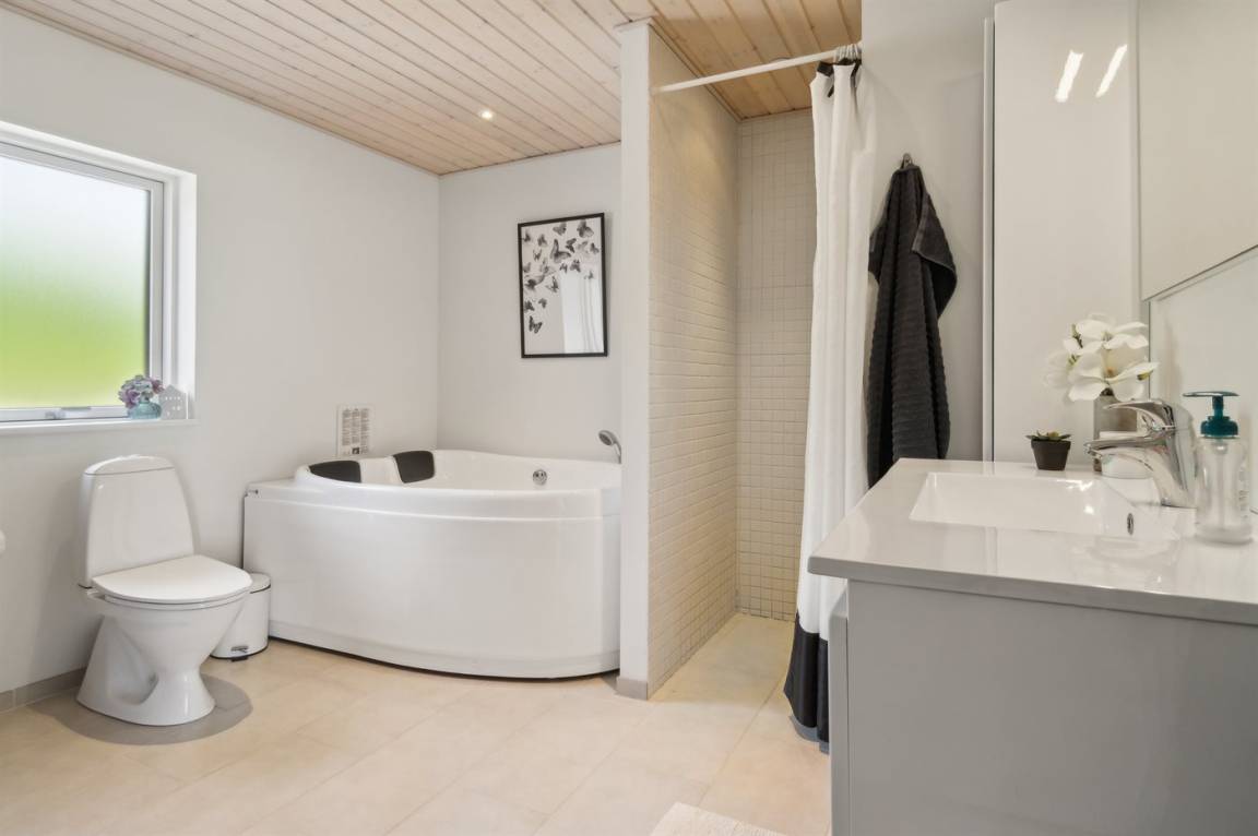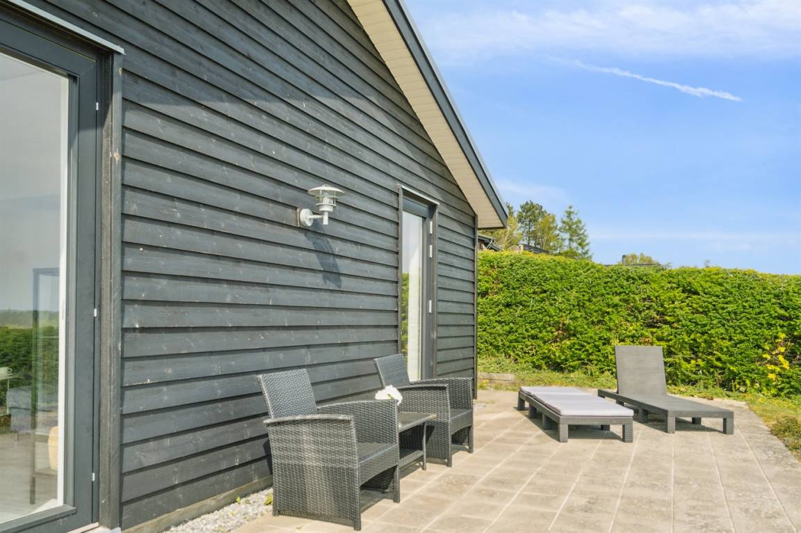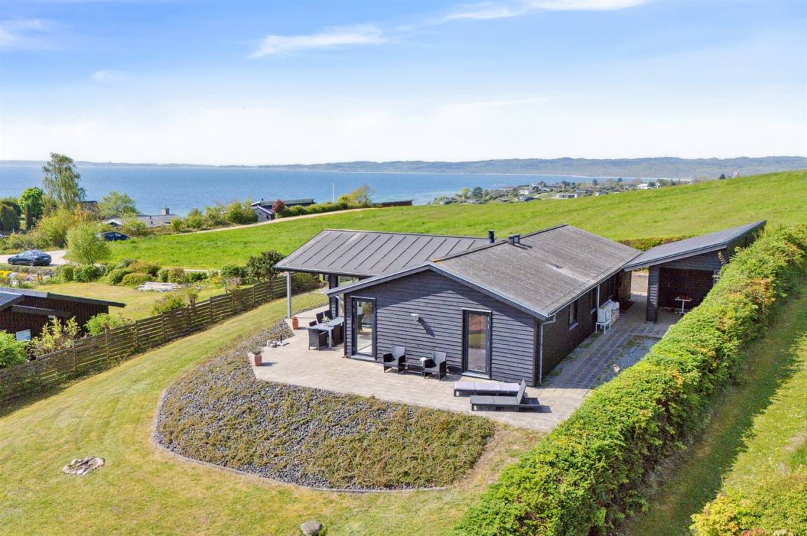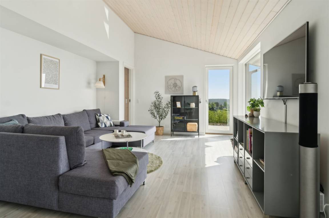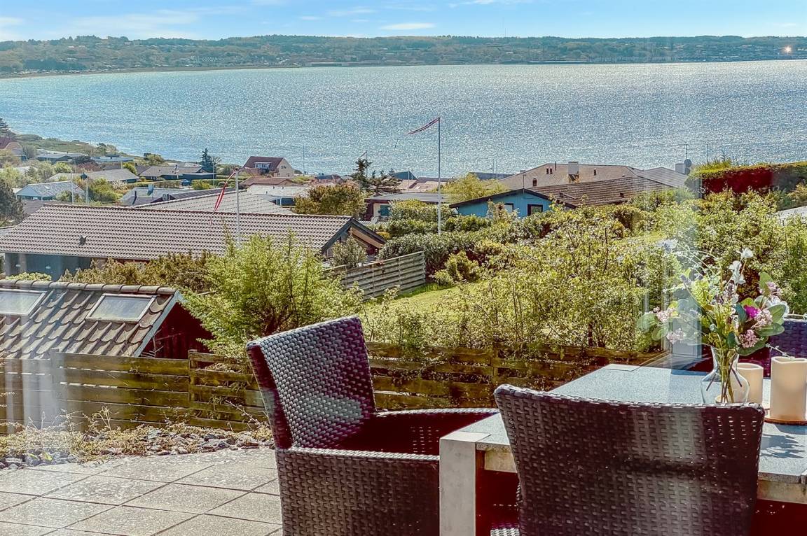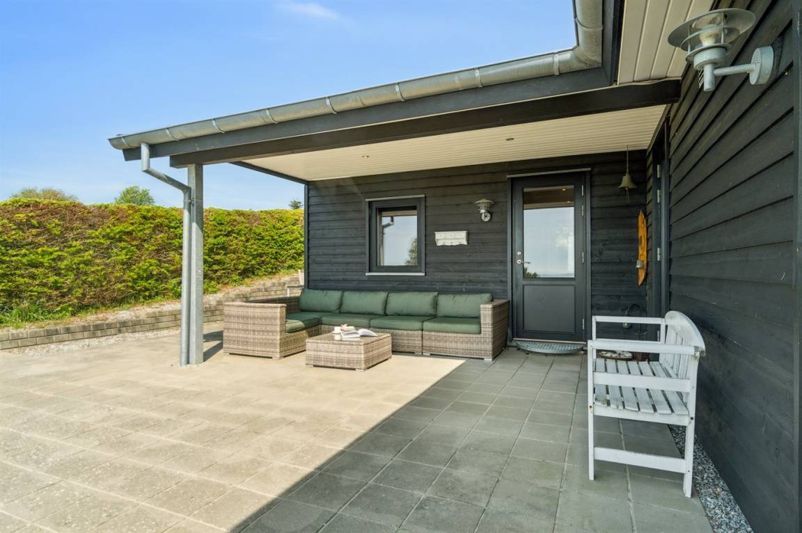 Wunderschön und erhöht gelegenes Ferienhaus mit Panoramablick auf das Meer und das Städtchen Ebeltoft. In Ebeltoft können Sie zum Beispiel die Fregatte Jylland besichtigen. Das Haus liegt in Hanglage am Ende einer Sackgasse, die in eine große Grünfläche mit einem fantastischen Aussichtspunkt mündet. Ganz in der Nähe liegt ein schöner, kinderfreundlicher Badestrand mit einem Badesteg, auf dem Sie Krabben fangen können. Der Strand eignet sich ebenfalls ideal zum Kite- und Windsurfen.