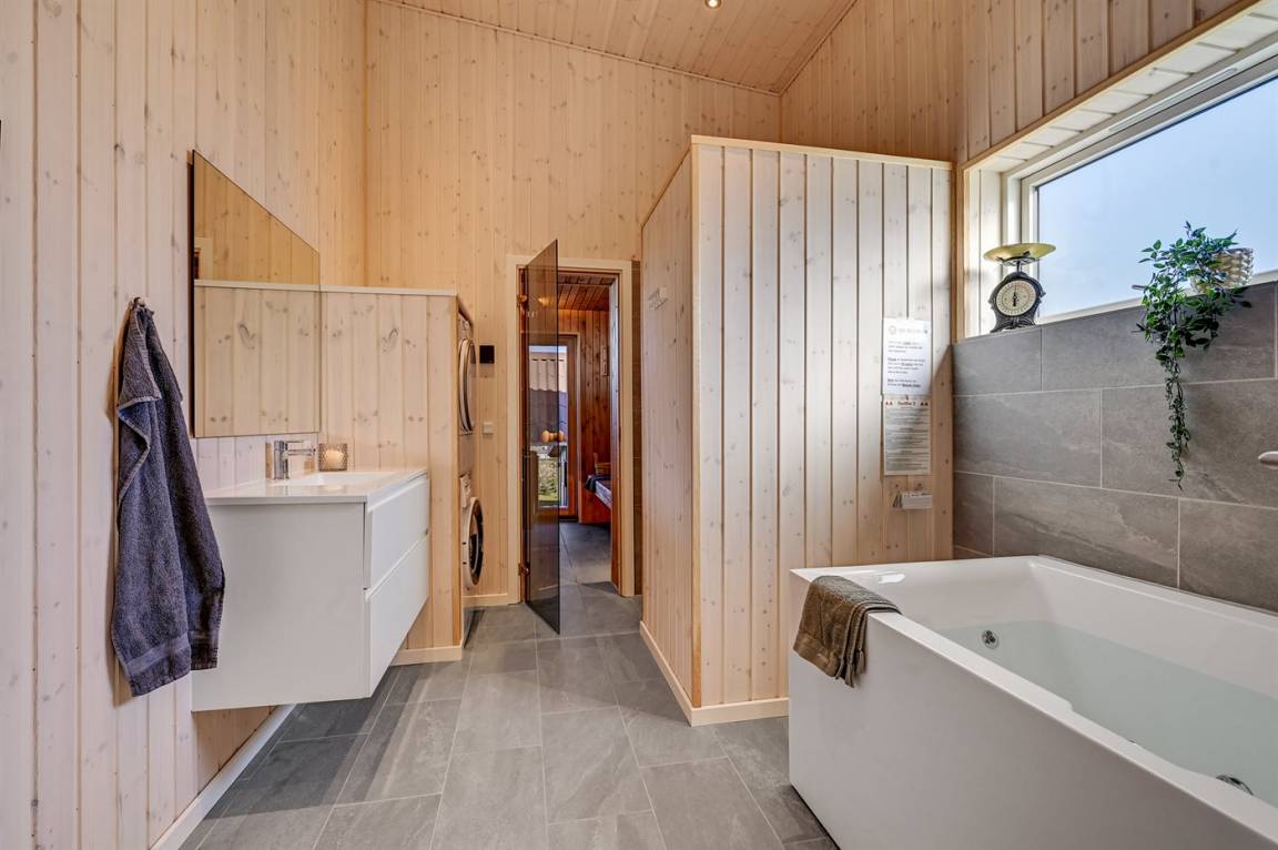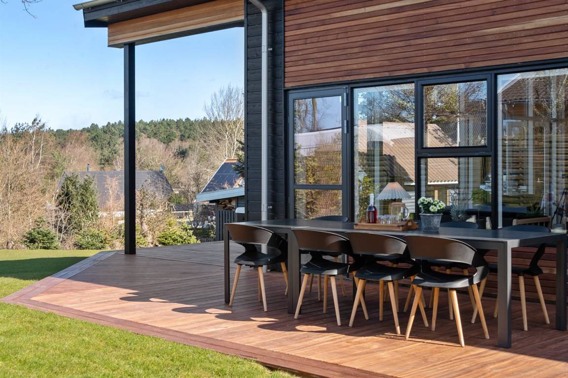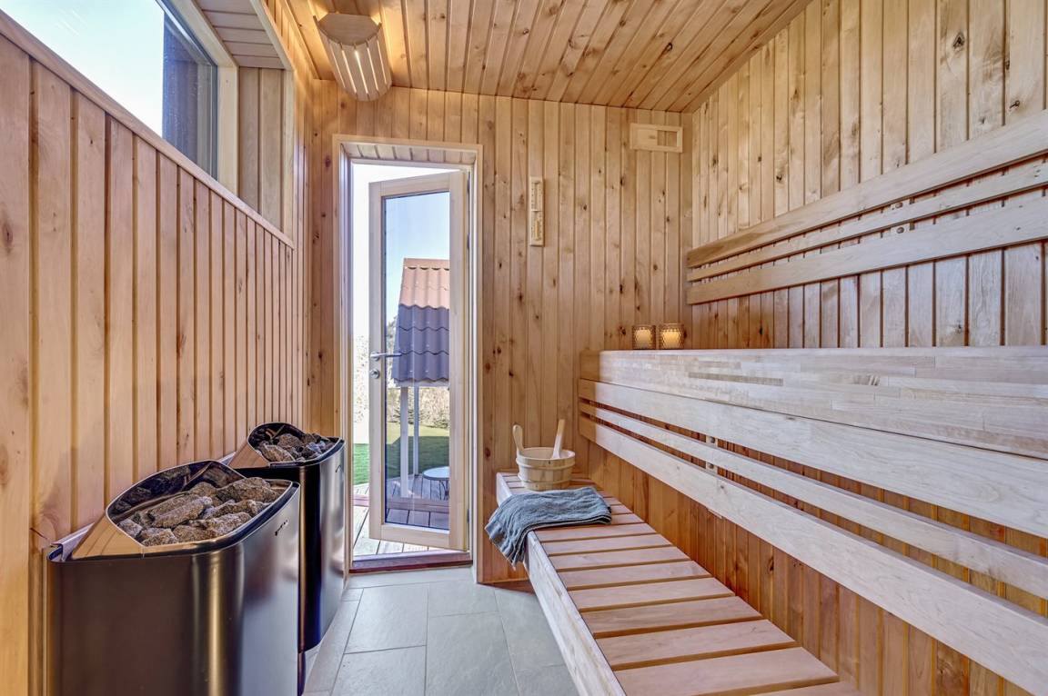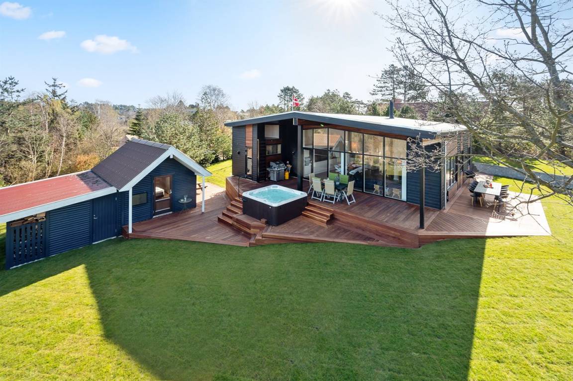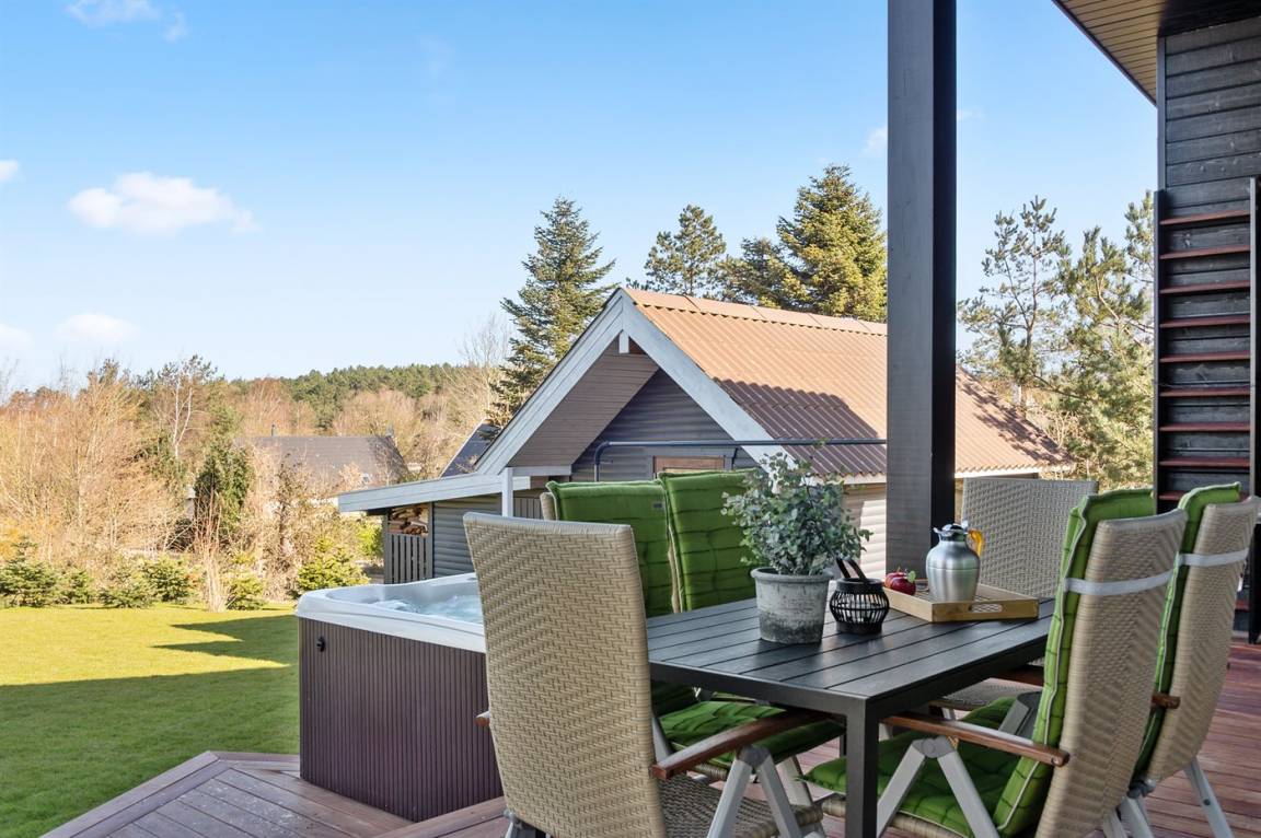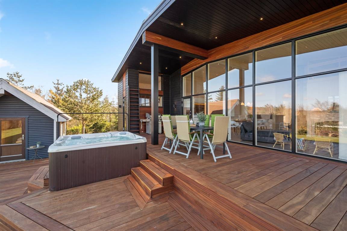 Komplett neues, einladendes Ferienhaus von 2020 in fantastischer Lage – sowohl das Wasser als auch die Innenstadt von Ebeltoft sind schnell erreicht. Das Ferienhaus ist in allen Einzelheiten perfekt durchdacht und bietet sowohl vom Haus als auch vom Garten aus einem tollen Ausblick auf das Wasser und die Ebeltoft Vig. Auf der Terrasse steht ein großer Whirlpool, der ganzjährig genutzt werden kann. Zudem haben Sie über die Terrasse Zugang zur Sauna, aus der Sie einen schönen Blick auf den Garten haben. Auf dem Grundstück befindet sich ein Gästehaus, das 2 der Schlafplätze beherbergt.