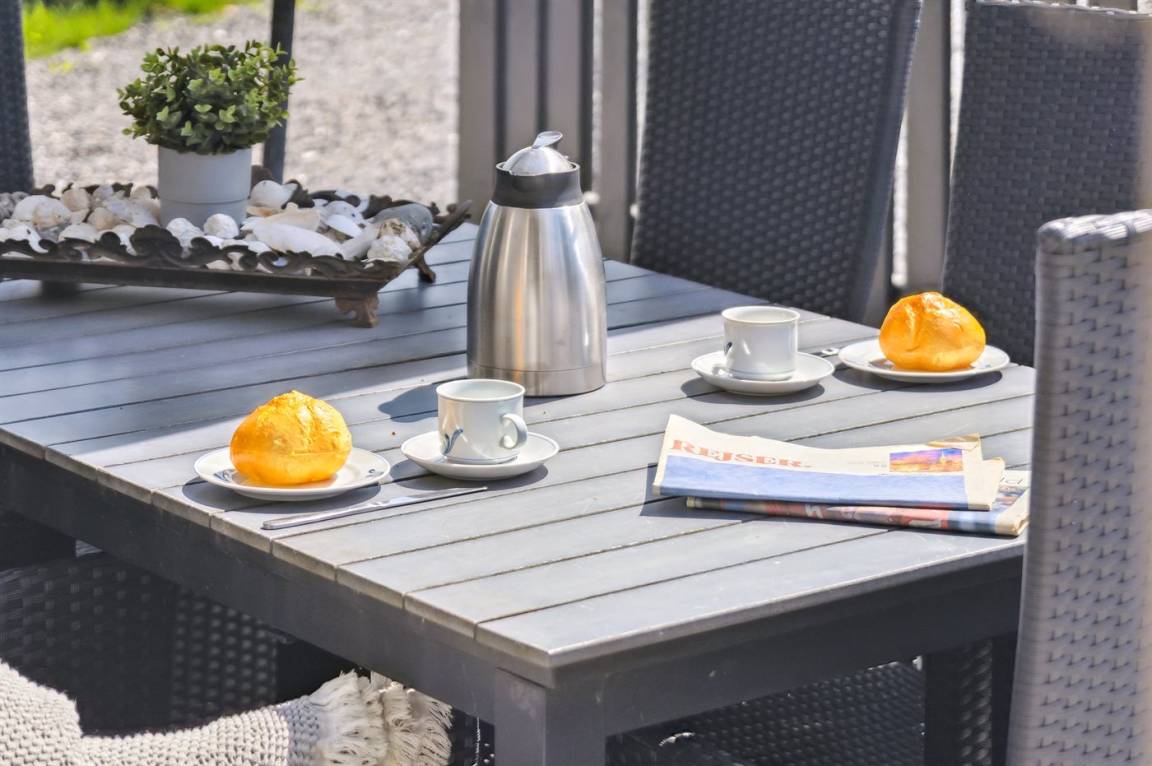 DraußenDie Ferienunterkunft liegt auf einem 1300 m² großen Naturgrundstück. Die Entfernung zum Meer beträgt 1700 m. Die nächste Einkaufsmöglichkeit liegt 1300 m entfernt. Es steht ein offenes Terrassenareal zur Verfügung. Außerdem gibt es überdachte Terrasse. Geräteraum. Es steht ein Grill zur Verfügung. Parkplatz auf dem Grundstück.