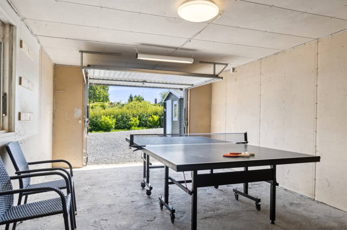 Die große Terrasse, die teilweise überdacht ist, ist der perfekte Ort für gemütliche Grillabende und zum gemütlichen Beisammensein. In der ehemaligen Garage findet man einen Aktivitätsraum mit Tischtennis und Darts, ideal für sowohl Kinder als auch Erwachsene.