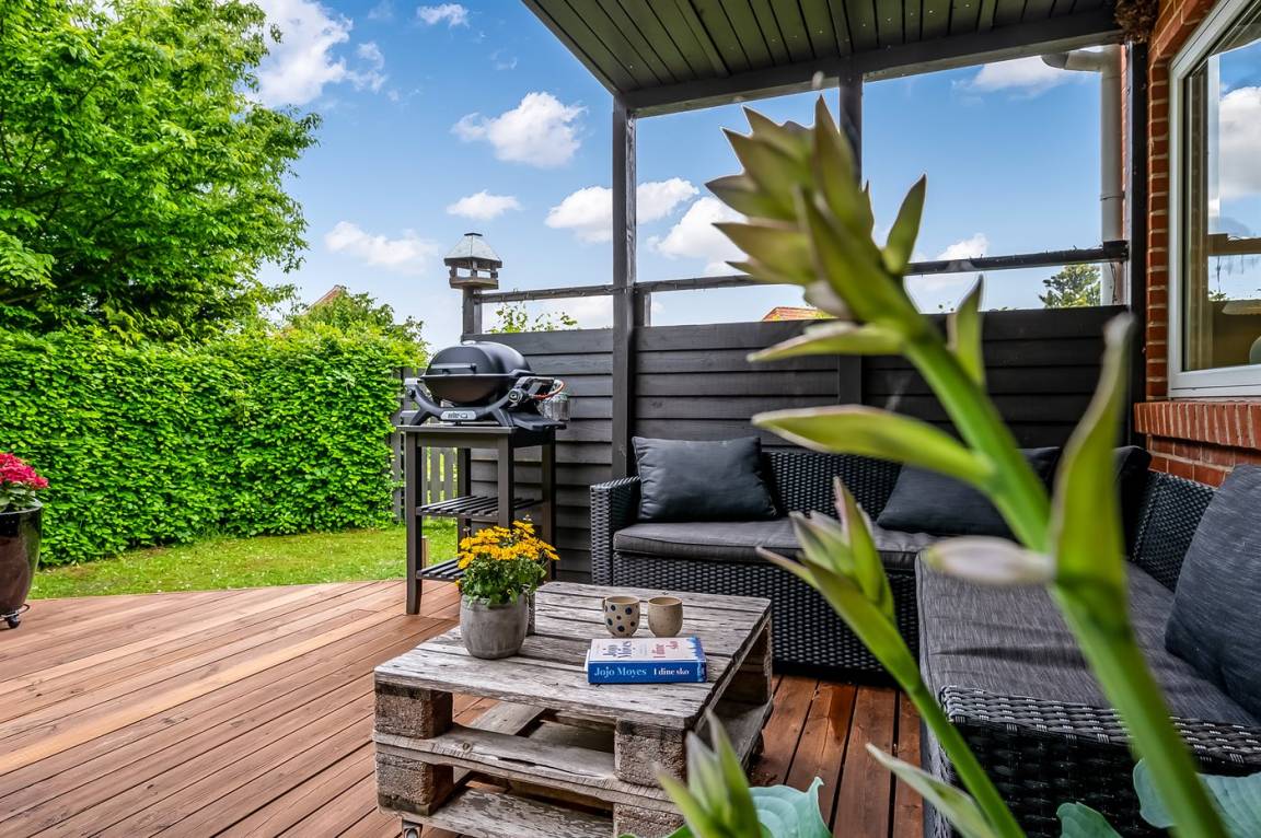 DraußenDie Ferienunterkunft liegt auf einem 300 m² großen Gartengrundstück. Die Entfernung zum Meer beträgt 500 m. Die nächste Einkaufsmöglichkeit liegt 800 m entfernt. Es steht ein offenes Terrassenareal zur Verfügung. Außerdem gibt es überdachte Terrasse. Es steht ein Grill zur Verfügung. Es ist ein Ladestecker für Elektroautos installiert. Ladestecker Typ 2. Mit einer Ladeleistung von 11 kW. Parkplatz auf dem Grundstück.