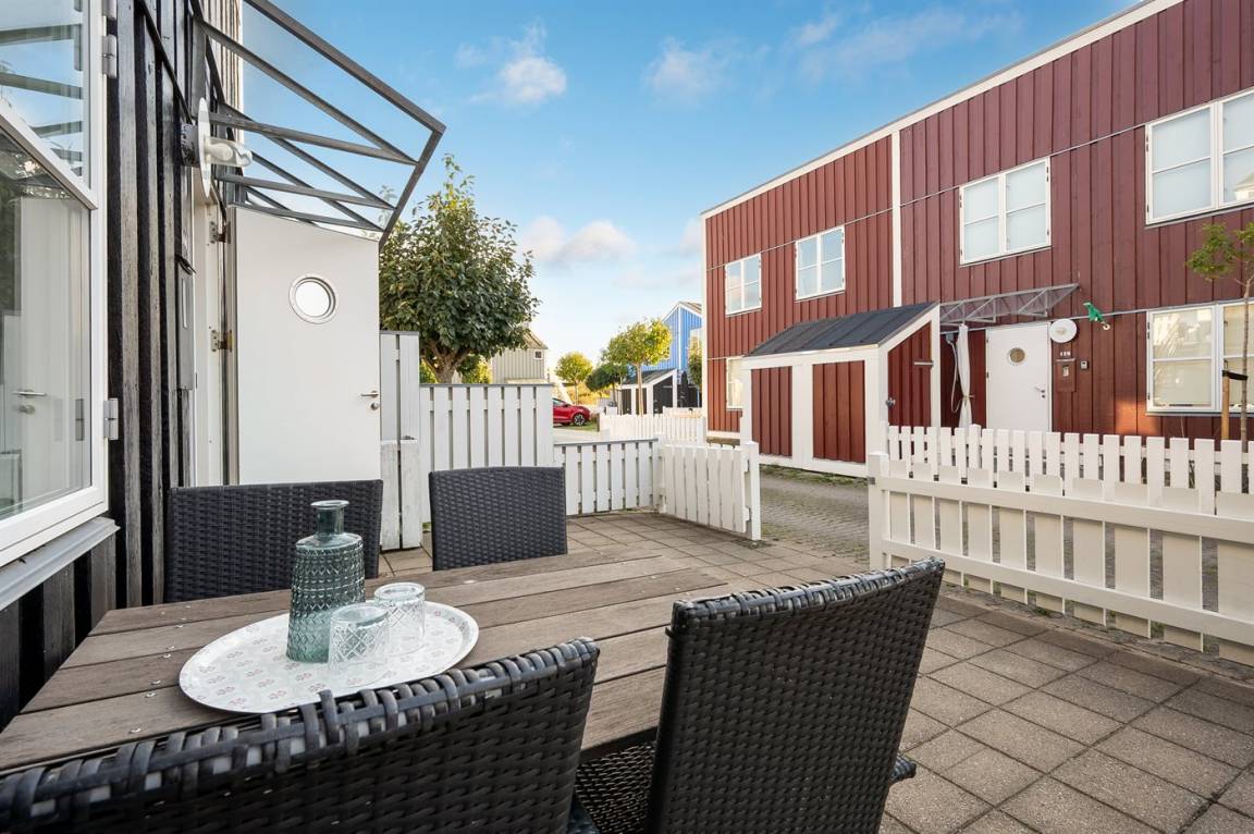 DraußenDie Ferienunterkunft liegt auf einem 110 m² großen Gartengrundstück. Die Entfernung zum Meer beträgt 10 m. Die nächste Einkaufsmöglichkeit liegt 300 m entfernt. Es steht ein offenes Terrassenareal zur Verfügung. Die Entfernung zu einem Spielplatz beträgt 300 m. Parkplatz auf dem Grundstück.