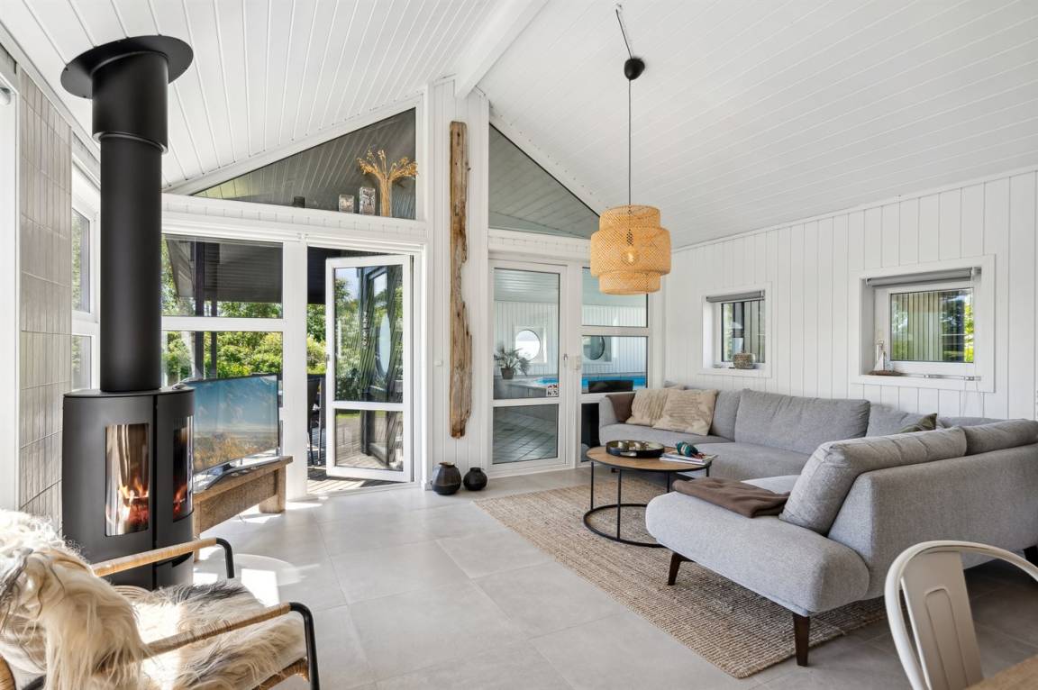 Das Haus wurde 1992/93 gebaut und 2024 renoviert. Zum Ferienhaus gehört eine große Terrasse mit Gartenmöbeln. Am einen Ende des Hauses gibt es einen schönen Poolbereich mit Fliesenboden, Swimmingpool (6 x 3 x 1,4 m), Whirlpool, Sauna und Duschkabine. Die Wände und Decken sind überall mit Kiefernholz verkleidet. Schönes Badezimmer mit beheizbarem Fliesenboden, Duschniche, Waschmaschine und Wäschetrockner. Besonders gut ausgestattete Küche mit u.a. Kühlschrank, Tiefkühlgerät, Herd mit Induktions-kochfelder, Umluftofen und Geschirrspüler.